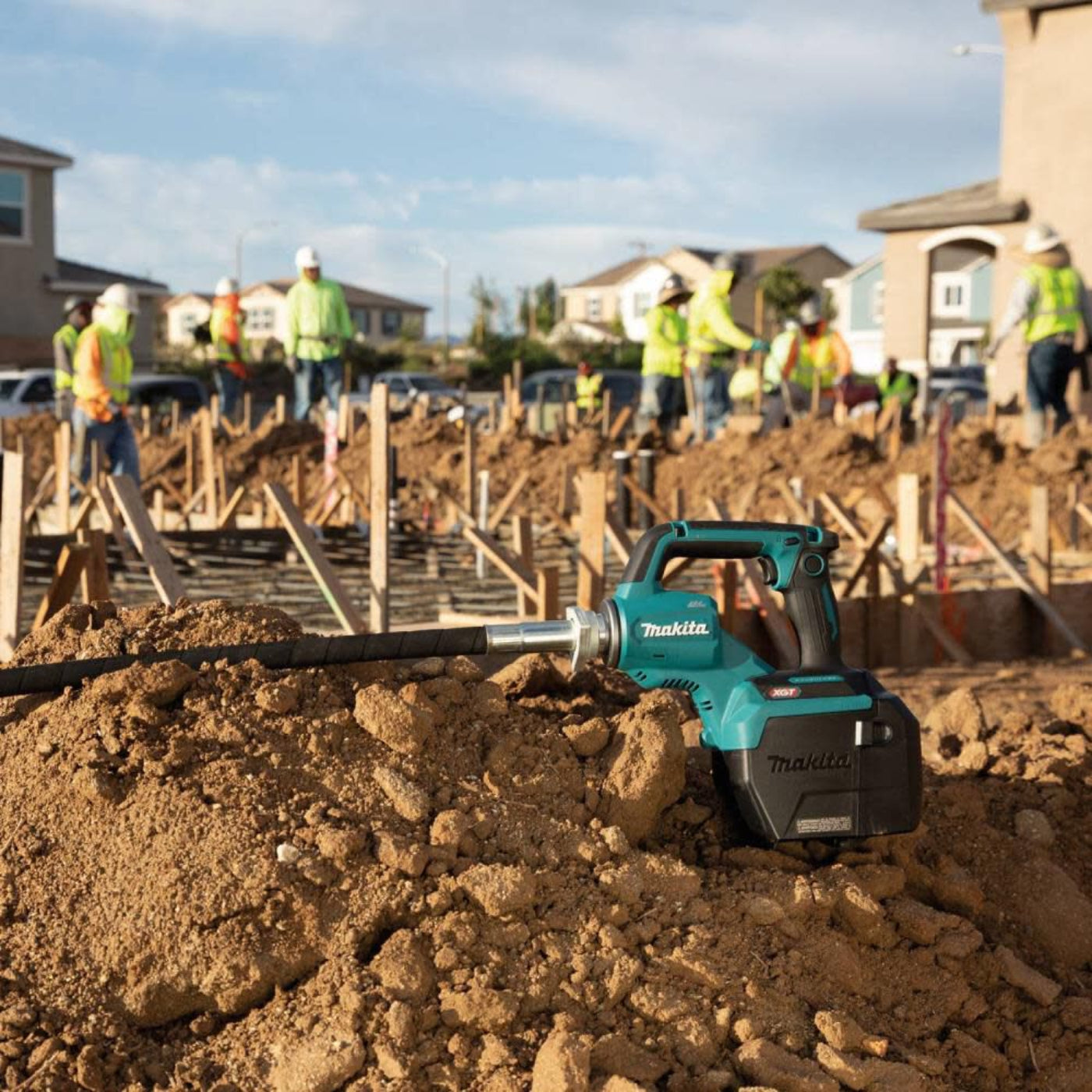 A: The Makita GRV01Z is a 40V Max XGT concrete vibrator designed for efficient concrete consolidation. This bare tool (battery and charger not included) features a 5 1/2 ft shaft and offers powerful performance for professional concrete finishing.