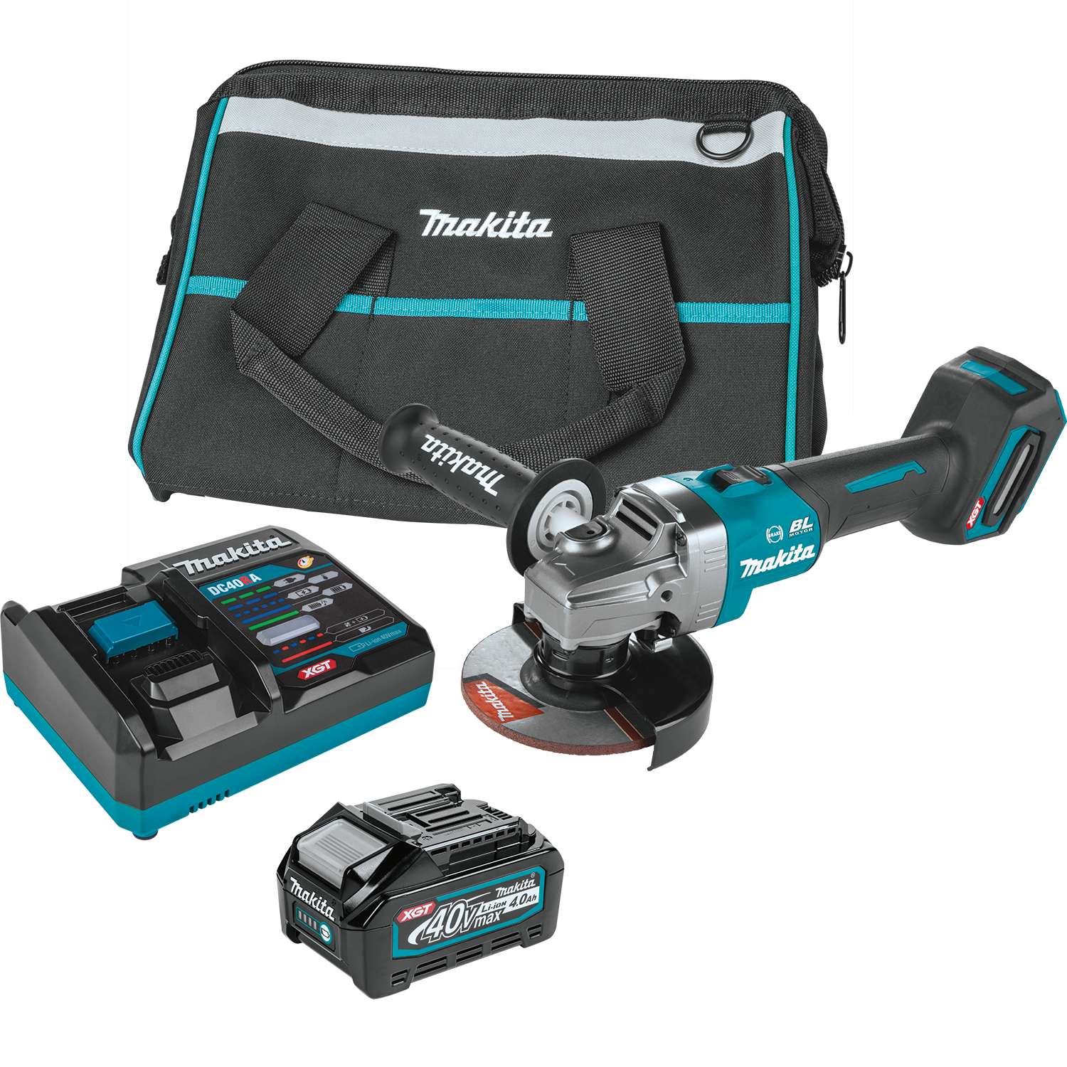 A: The GAG01M1 kit includes the Makita 40V Max XGT Angle Grinder, a 4.0Ah battery, a charger, a grinding wheel, and a carrying case for easy storage and transport.
