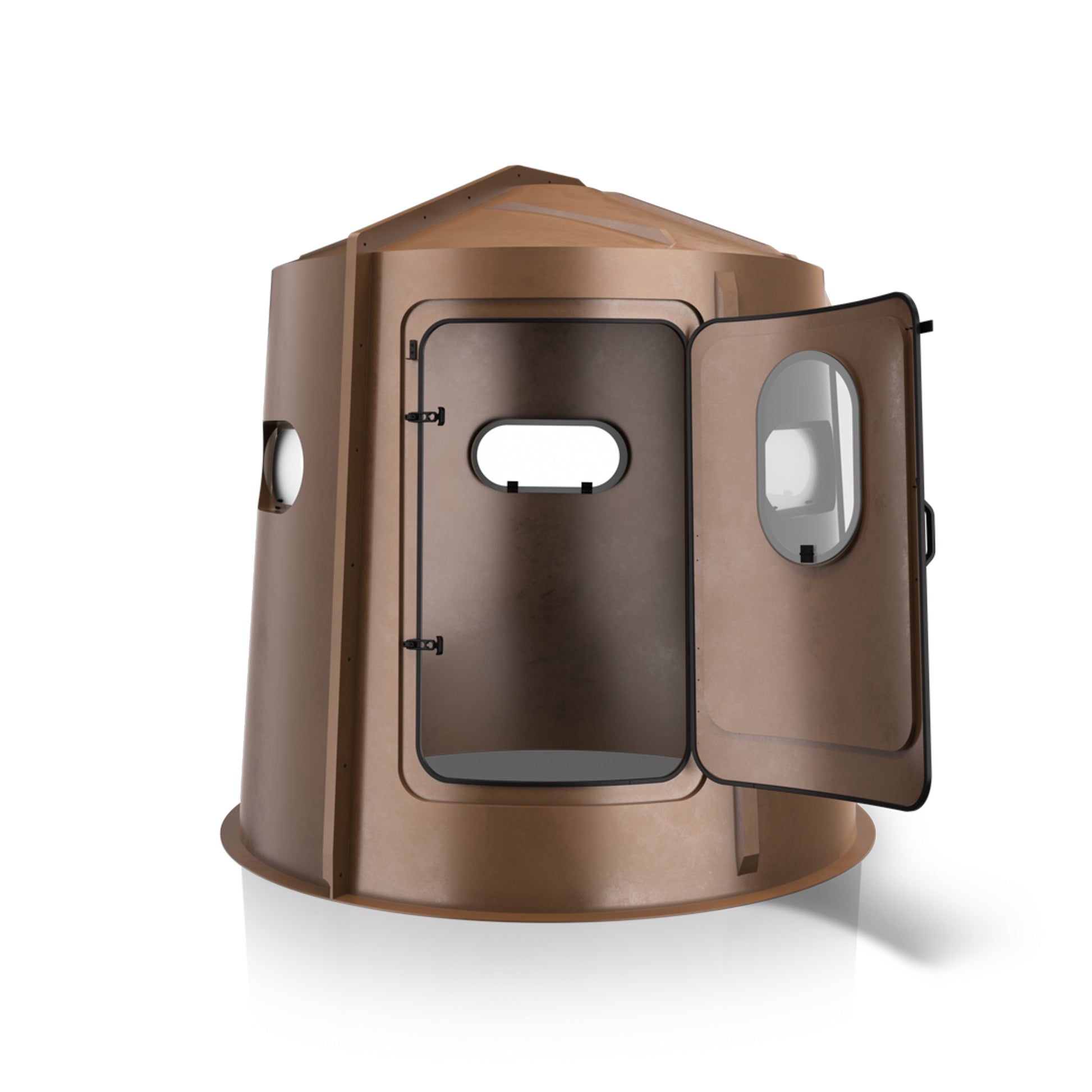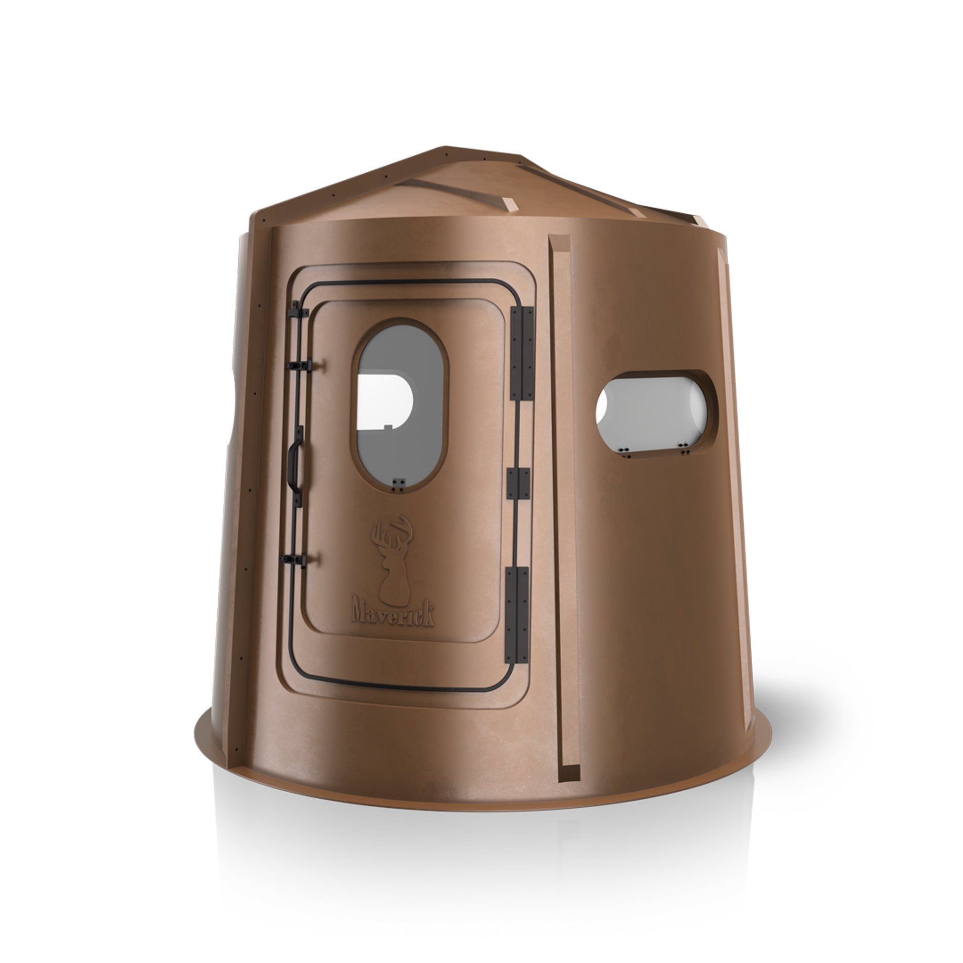 The Maverick 5-Shooter GX Blind has five horizontal shooting windows, giving gun and crossbow hunters a 360-degree view. Its two-piece design is simple to assemble and easy to transport. Once assembled, the blind has a 5-foot diameter and is 6' 3" tall. The Maverick 5-Shooter GX is made from durable, UV-stabilized plastic that will keep you concealed and protected from whatever weather Mother Nature throws at it.
