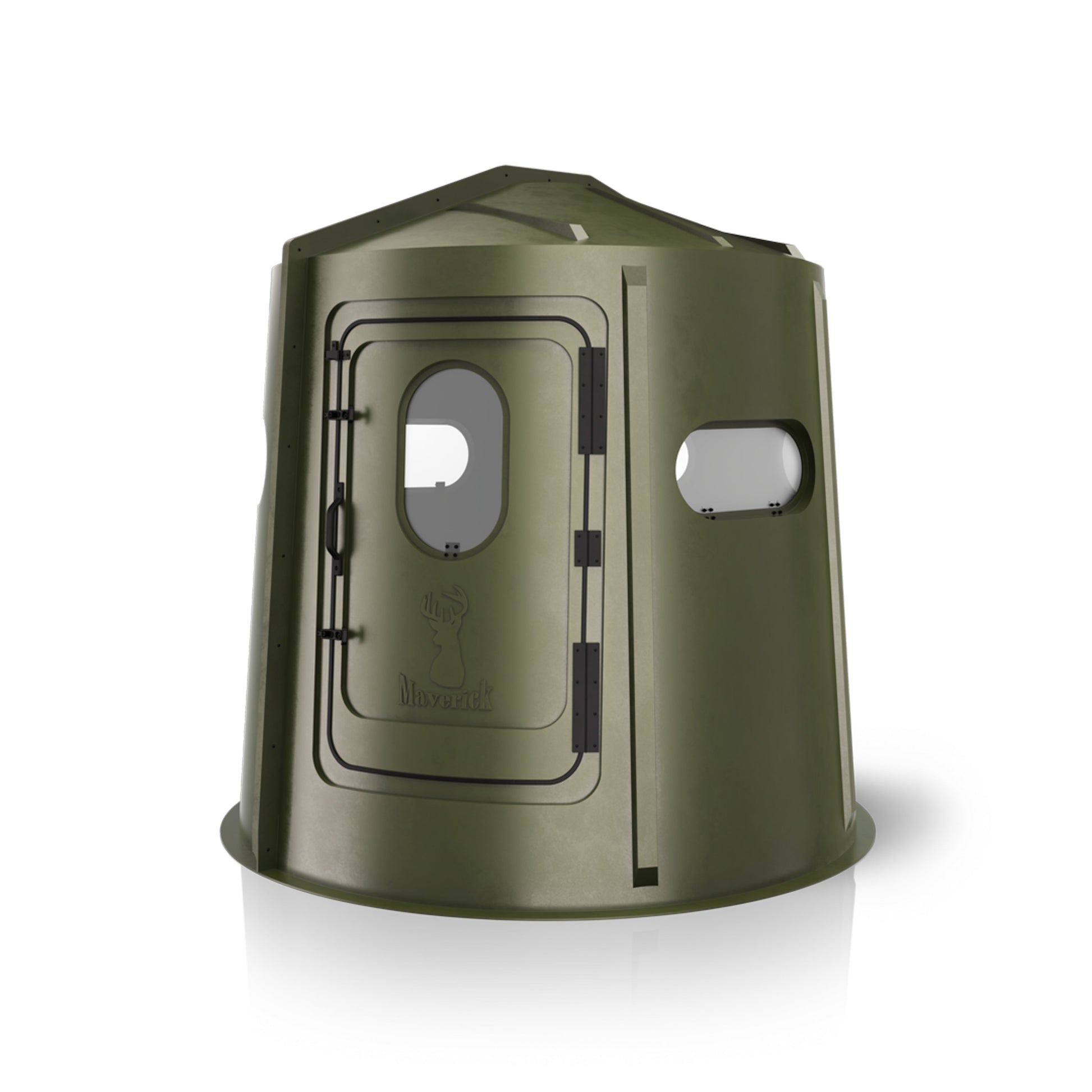 The Maverick 5-Shooter GX Blind has five horizontal shooting windows, giving gun and crossbow hunters a 360-degree view. Its two-piece design is simple to assemble and easy to transport. Once assembled, the blind has a 5-foot diameter and is 6' 3" tall. The Maverick 5-Shooter GX is made from durable, UV-stabilized plastic that will keep you concealed and protected from whatever weather Mother Nature throws at it.