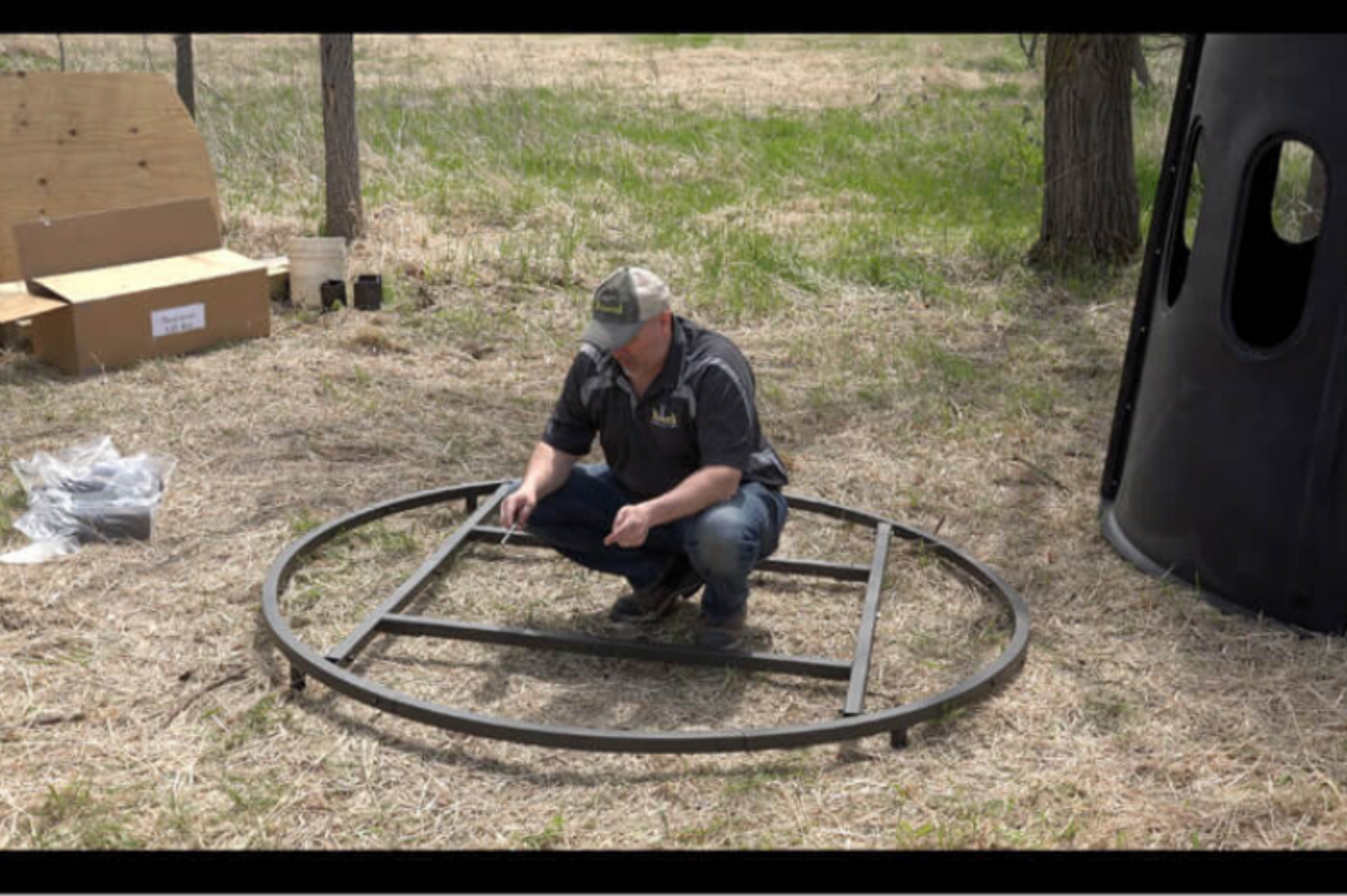 The Nex-Level Floor Base is an easy and safe way to help you build a solid platform and smooth flooring solution for any blind. The powder-coated steel frame is easy to assemble and all you need to do is add plywood for the floor (we suggest using 3/4"). Its 81" diameter accommodates most of our Maverick and Booner Blind models. (The Booner 6-Panel Blind requires a 3" plywood overhang all around.) Four metal feet elevate your blind several inches off the ground. Lumber not included.