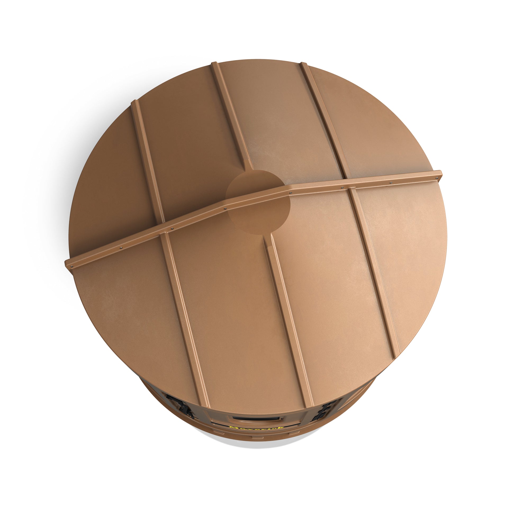 Its patented rainproof overhang where the two pieces connect keeps out everything but water. Its 2" bottom flange for securing it to the ground or a platform keeps you dry and provides stability in high winds. With Maverick's 360-degree viewing and shooting, no yearly setup or takedown, you can spend more time hunting and less time working.