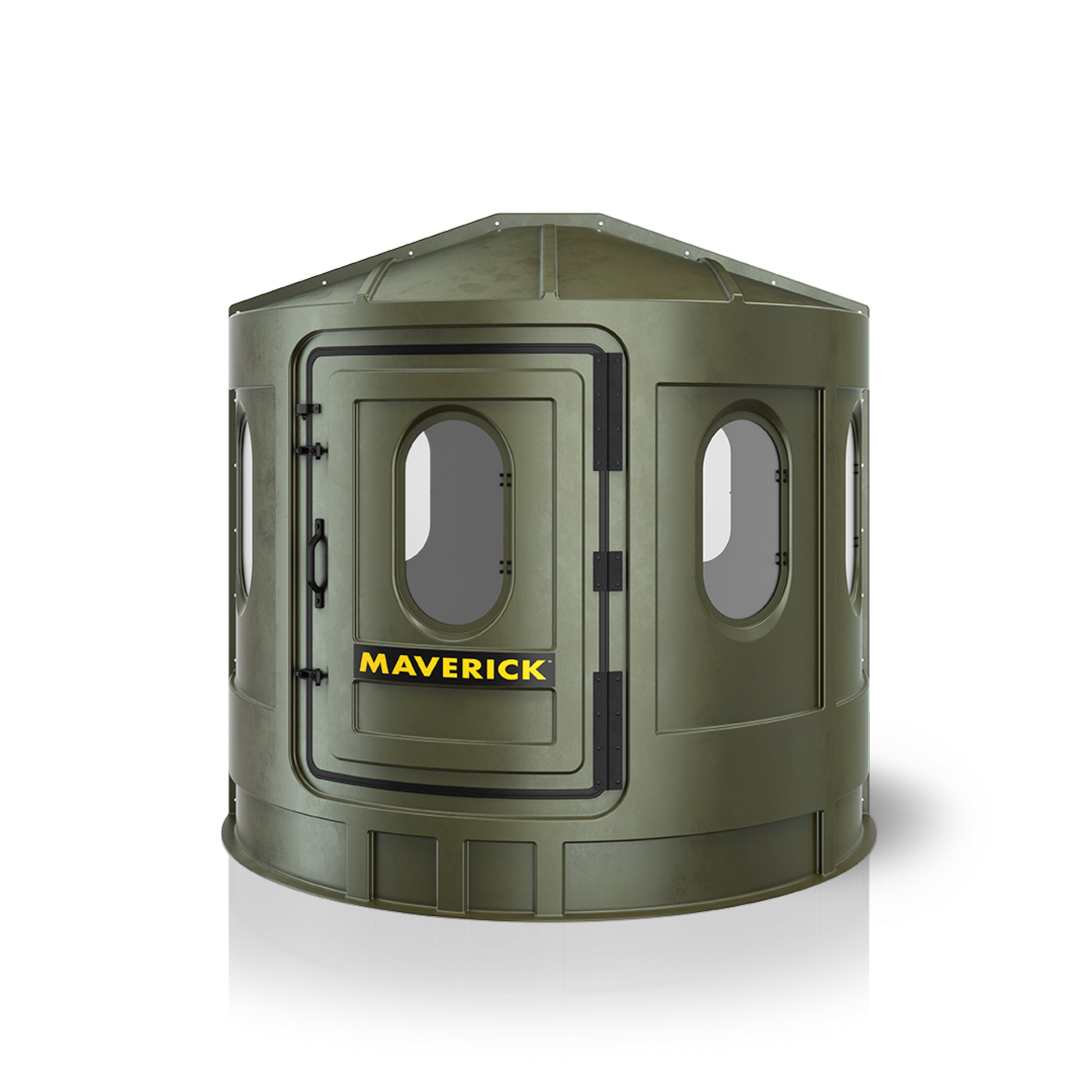 A: The Maverick XL Hunting Blind is a spacious, high-quality hunting blind designed for comfort and optimal visibility. It features a green exterior with clear windows, offering excellent views while maintaining a low-profile in the field.