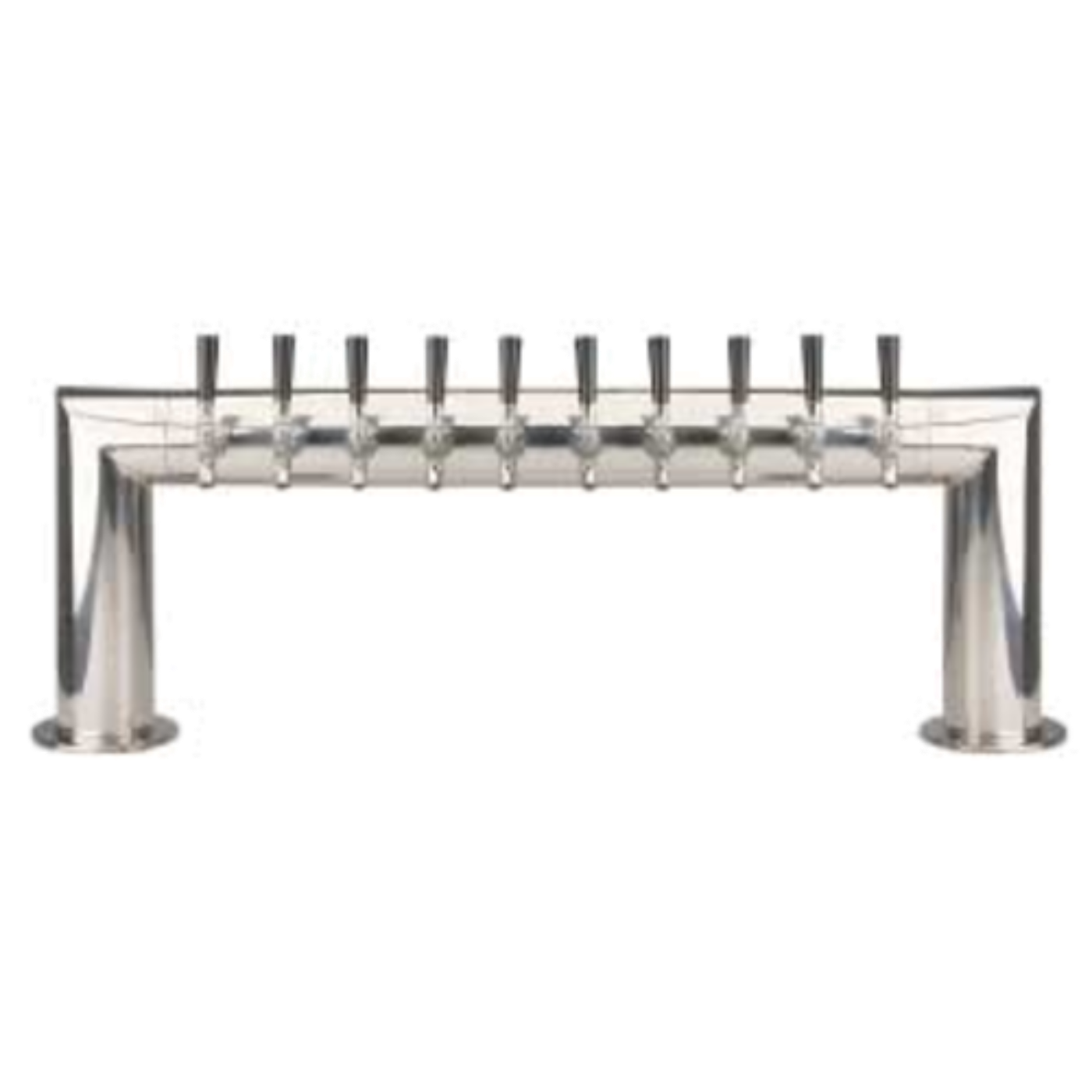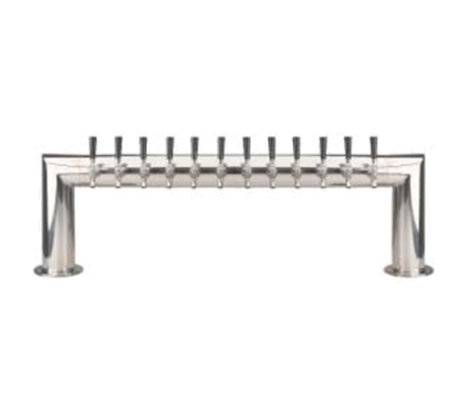 Pass-Thru Draft Beer Tower, countertop, 41"W x 14-1/4"H, air-cooled, (10) chrome-plated brass faucets (handles not included), 3" OC, 10-1/2" faucet clearance, (2) 4" dia. columns with 6" dia. bases, mounting gaskets & hardware provided, polished stainless steel finish