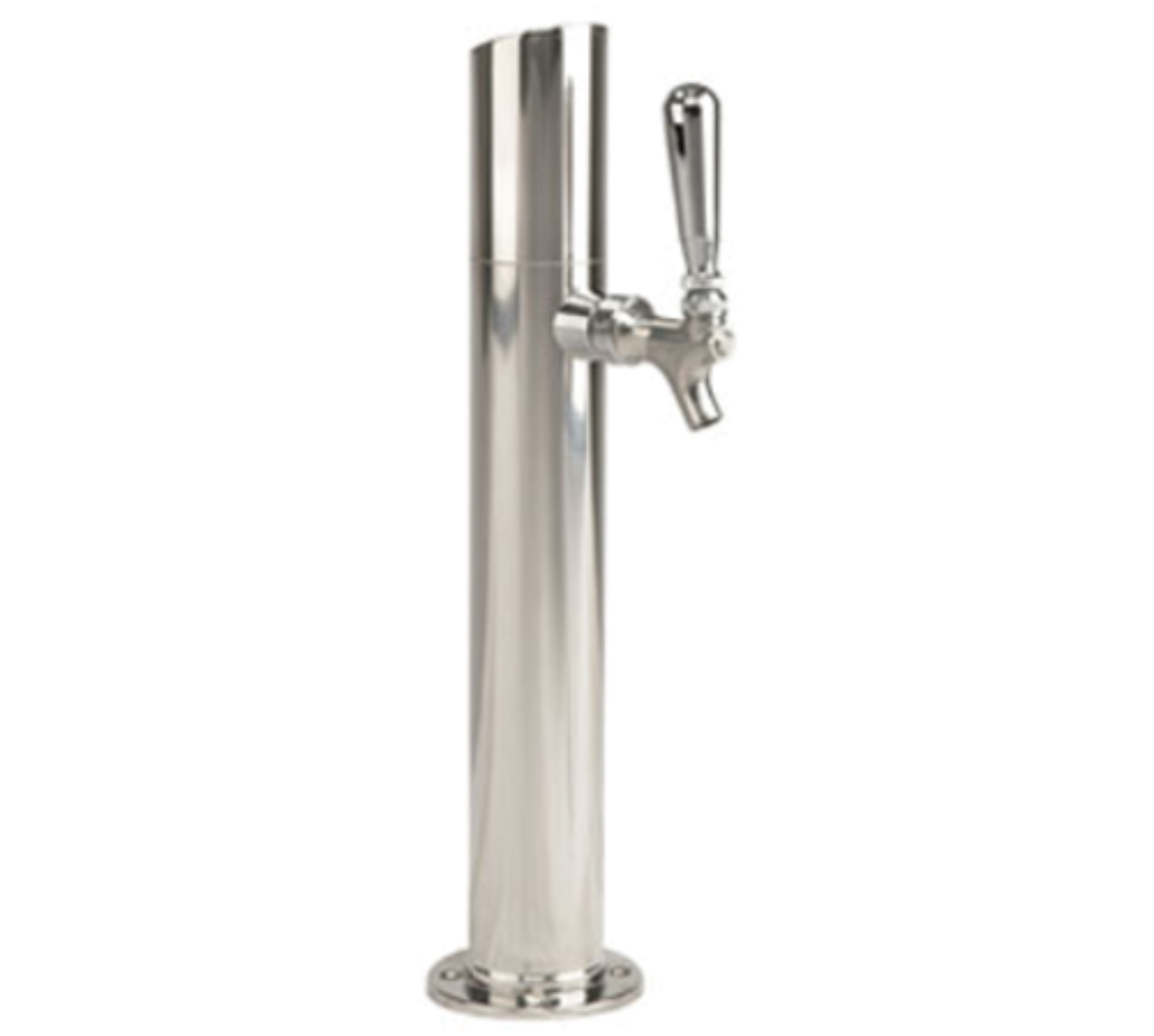 Skyline Draft Beer Tower, countertop, 2-1/2" dia. x 17-3/4"H, glycol-cooled (Kool-Rite integrated module), (1) 304 stainless steel faucet (handle not included), 11" faucet clearance, 4"W base, 304 stainless steel column, 304 stainless steel beer line & leak-proof shank, includes cooling block & mounting hardware, polished stainless steel finish