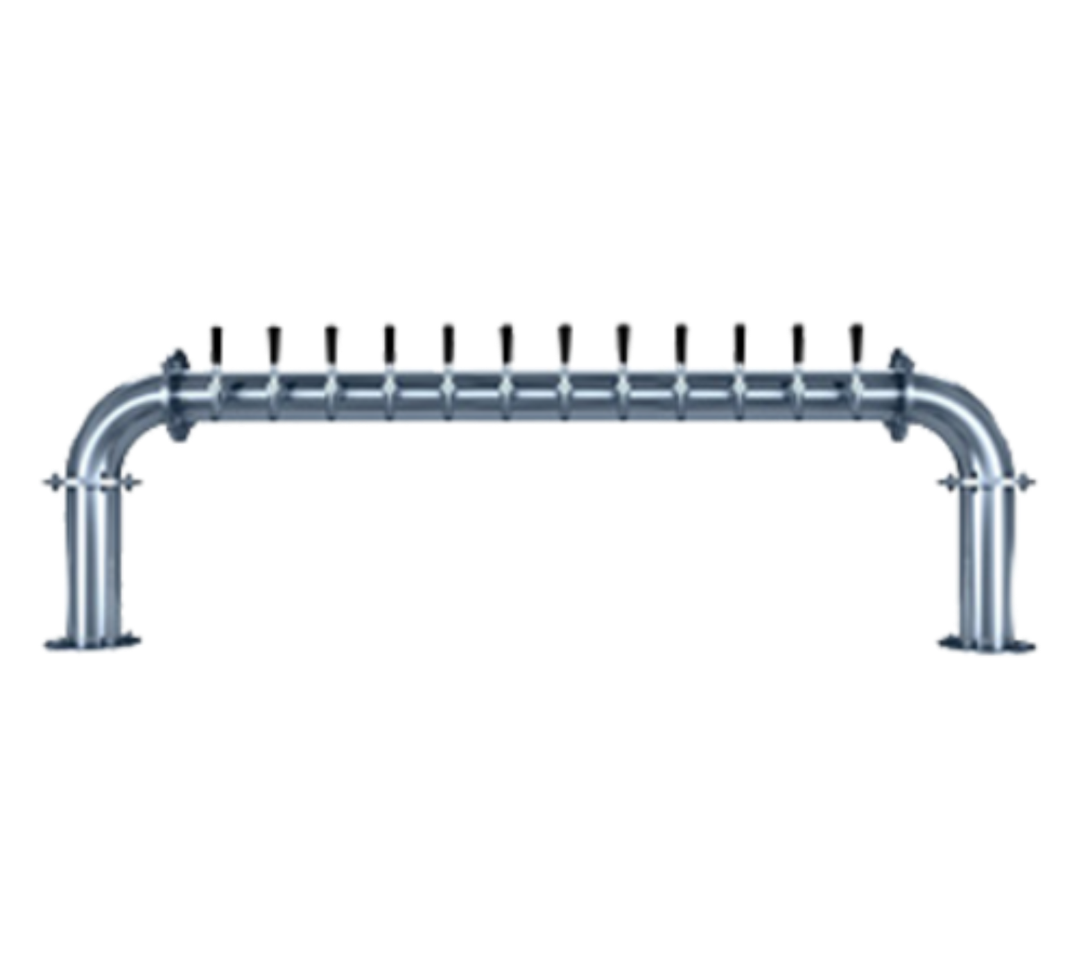 Titan "U" Draft Beer Tower, countertop, 71-3/4"W x 19-7/8"H, glycol-cooled (Kool-Rite integrated module), (12) 304 stainless steel faucets (handles not included), 4" OC, 14" faucet clearance, 4" dia. brew pipe with (2) 7" dia. bases, 304 stainless steel product lines & leak-proof shanks, includes cooling block & copper coolant lines, polished stainless steel finish, NSF