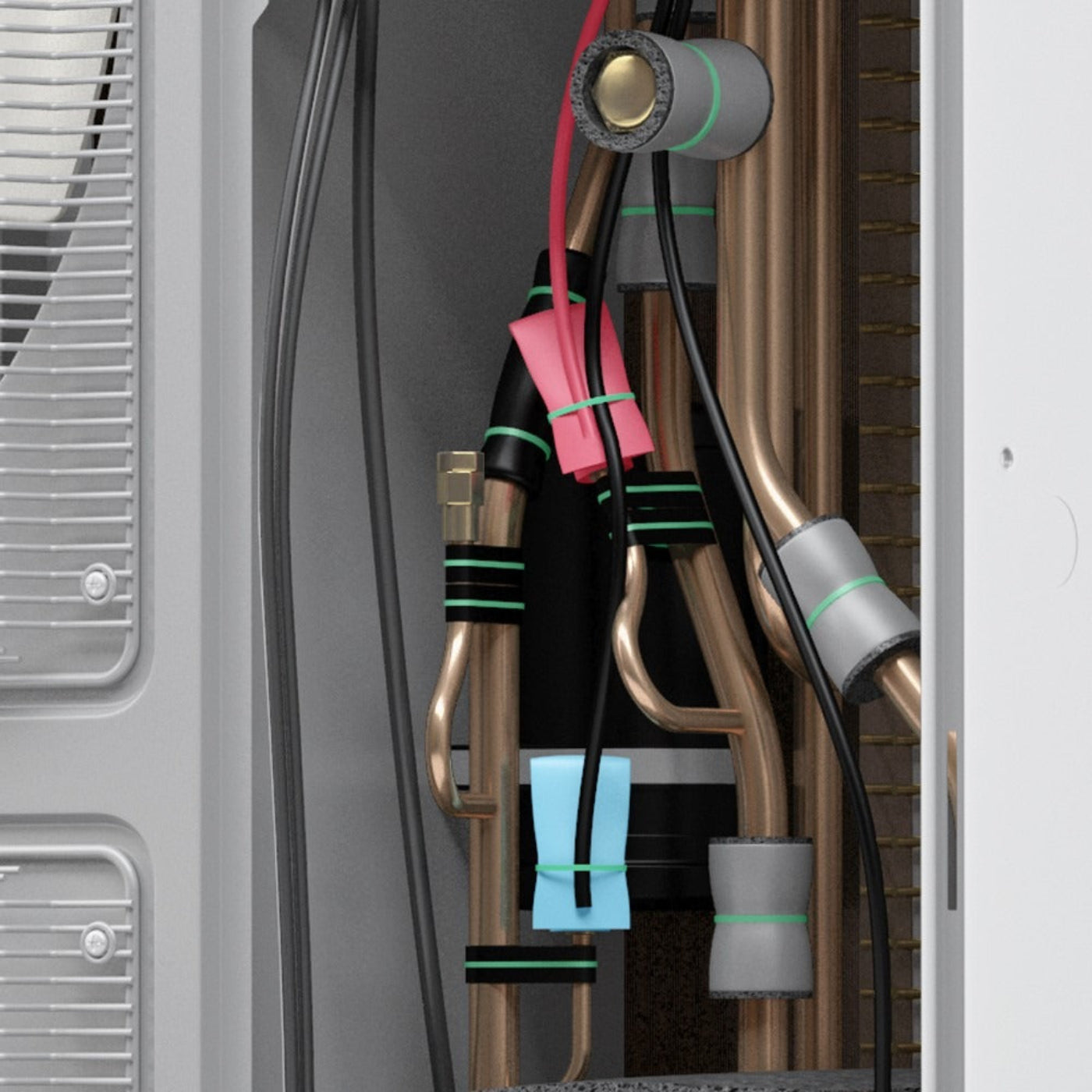 Inspect refrigerant lines and electrical connections for leaks or damage.