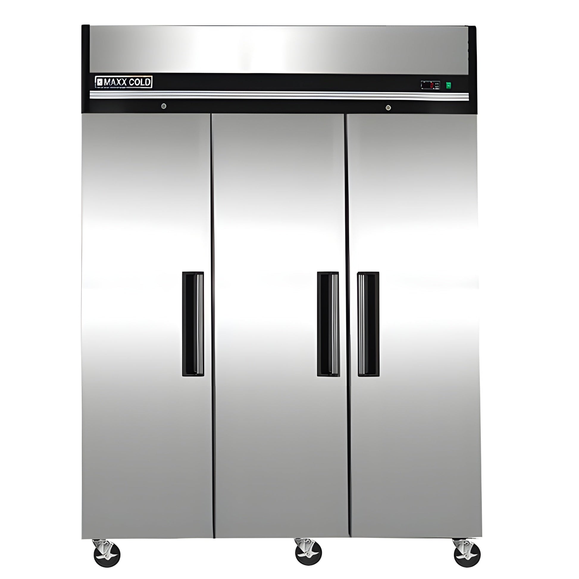 Maxx Cold 81-inch-wide triple door reach-in freezer is designed to assist you in meeting all food service industry requirements while making its content easy to access.