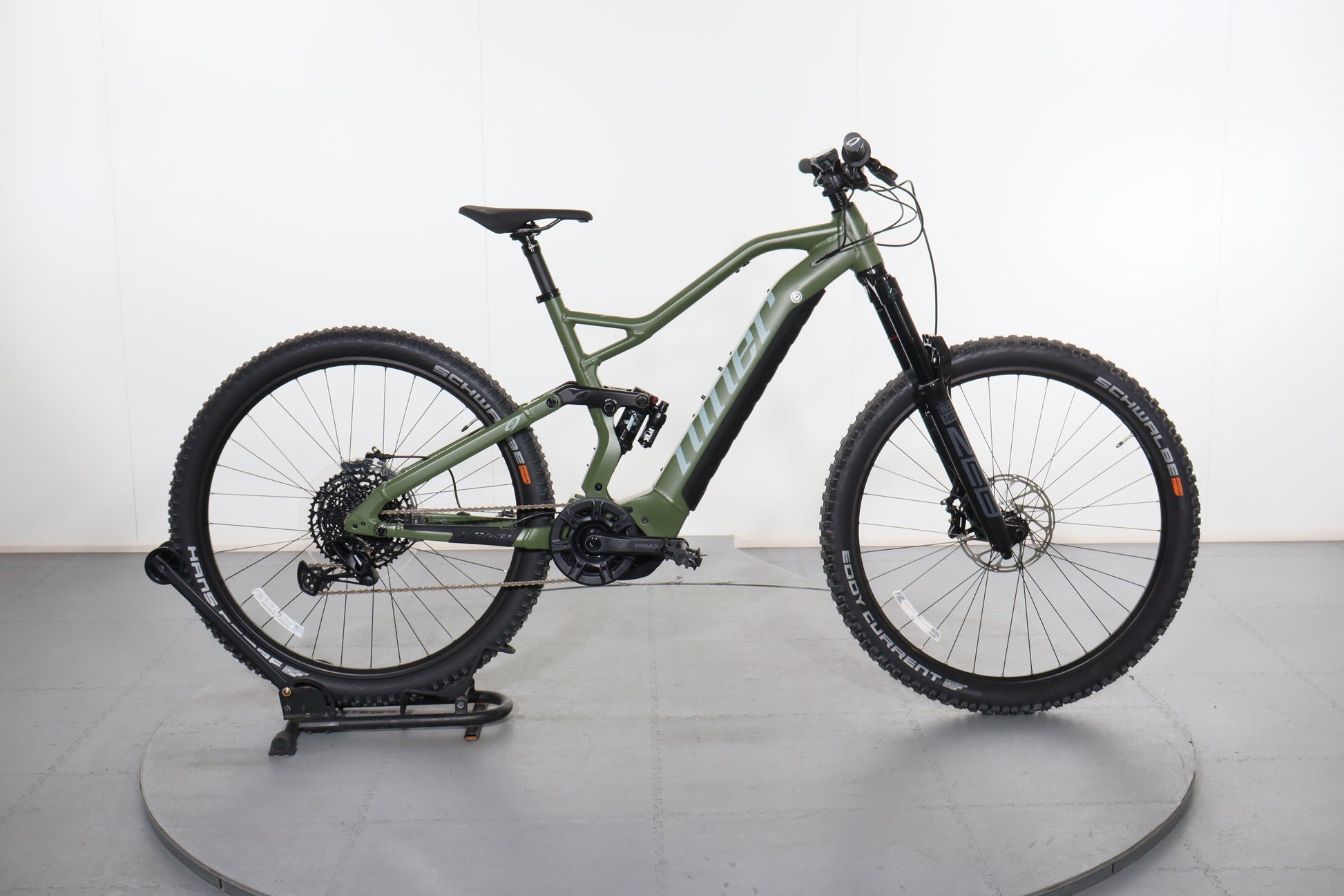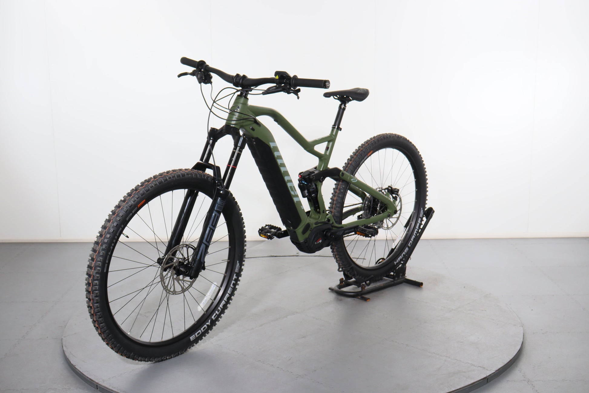 Wheels & Tires: Stans NoTubes Flow D 29er wheels paired with Schwalbe Eddy Current and Hans Dampf tires provide stability and traction on technical trails.