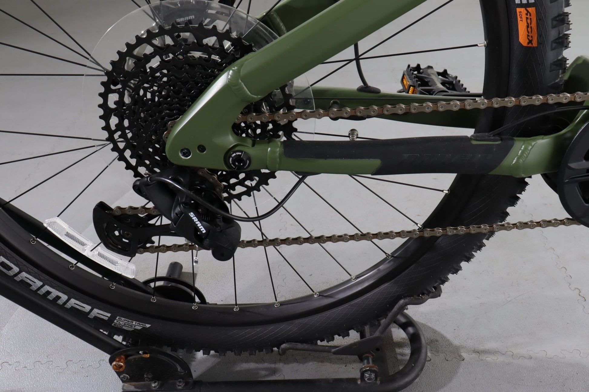 Drivetrain Maintenance: Clean and lubricate the SRAM SX Eagle 12-speed drivetrain components regularly for smooth shifting.