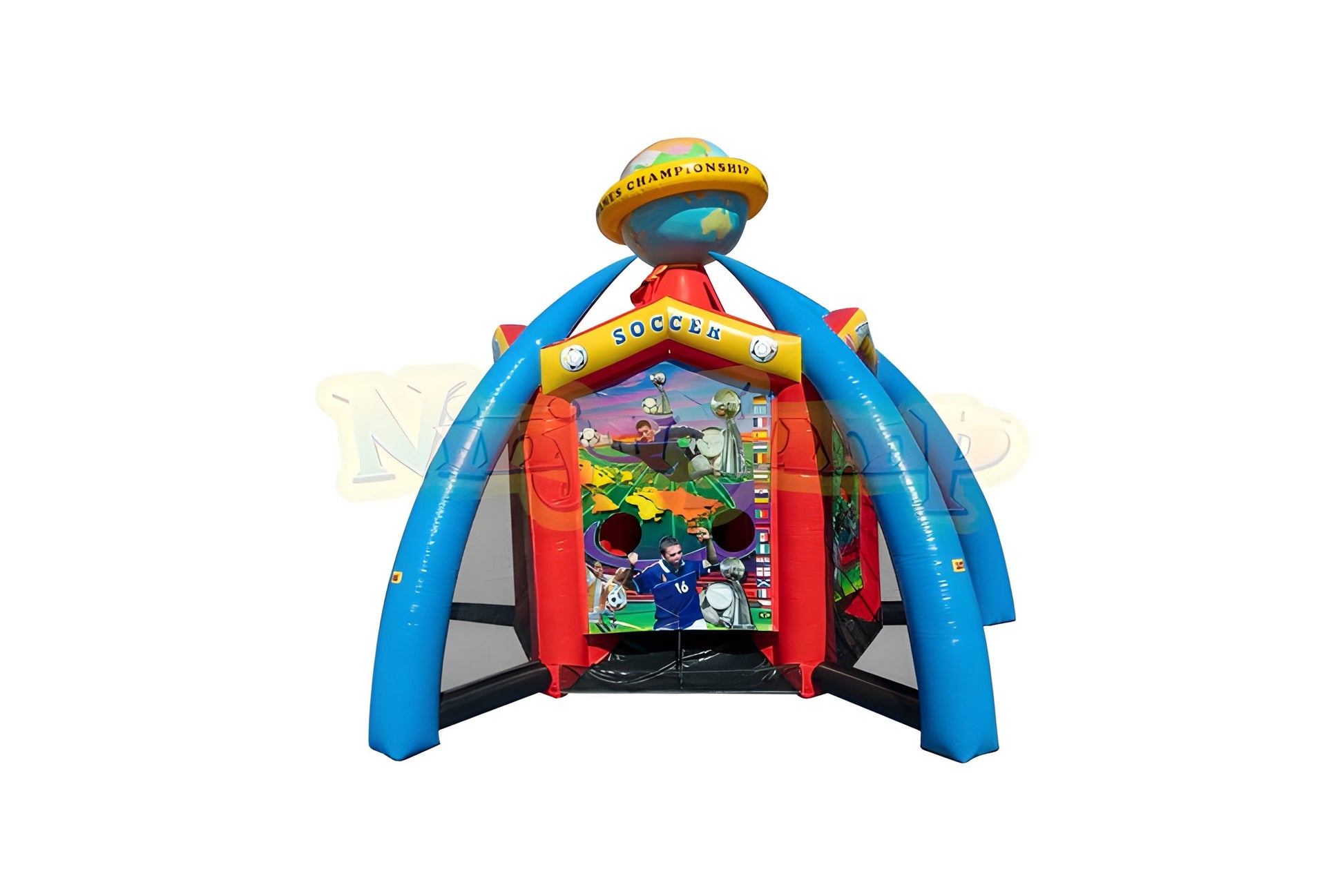 No matter the sport, World Sports Games has the game kids want to play! Choose from these popular sports activities: football, soccer, basketball, baseball, dart/Frisbee, all under one inflatable play structure. Encourage team spirit and friendly competition as children play their favorite game simultaneously and facilitate variety as participants have the chance to play each sport.