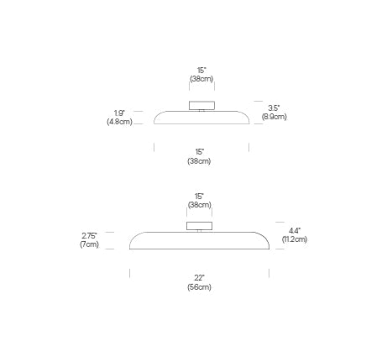 A: 22-inch diameter, slim profile for a clean architectural look.