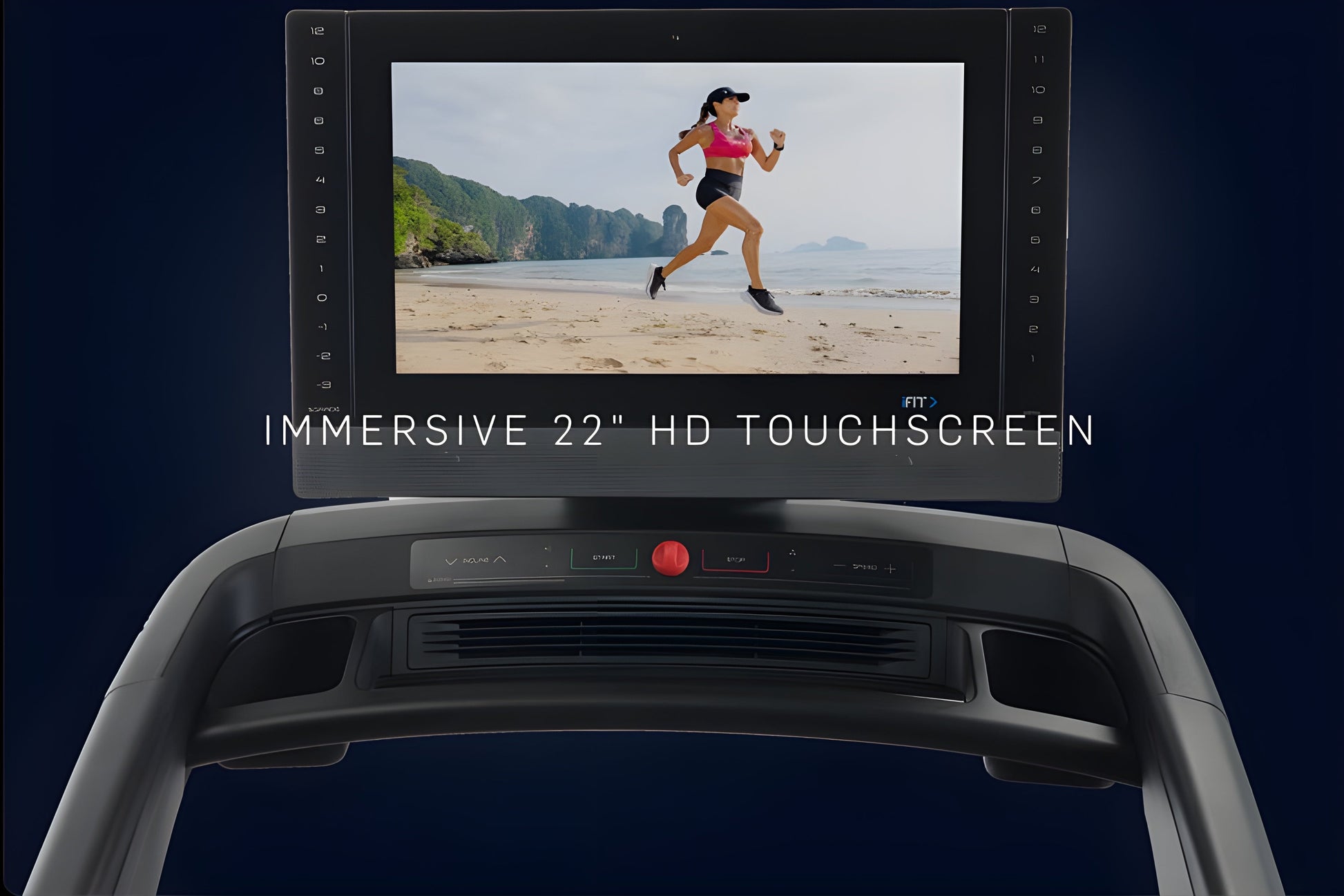 A: The treadmill features a 22-inch interactive touchscreen display that allows you to access live and on-demand iFit workouts, track your performance, and enjoy virtual outdoor running routes.