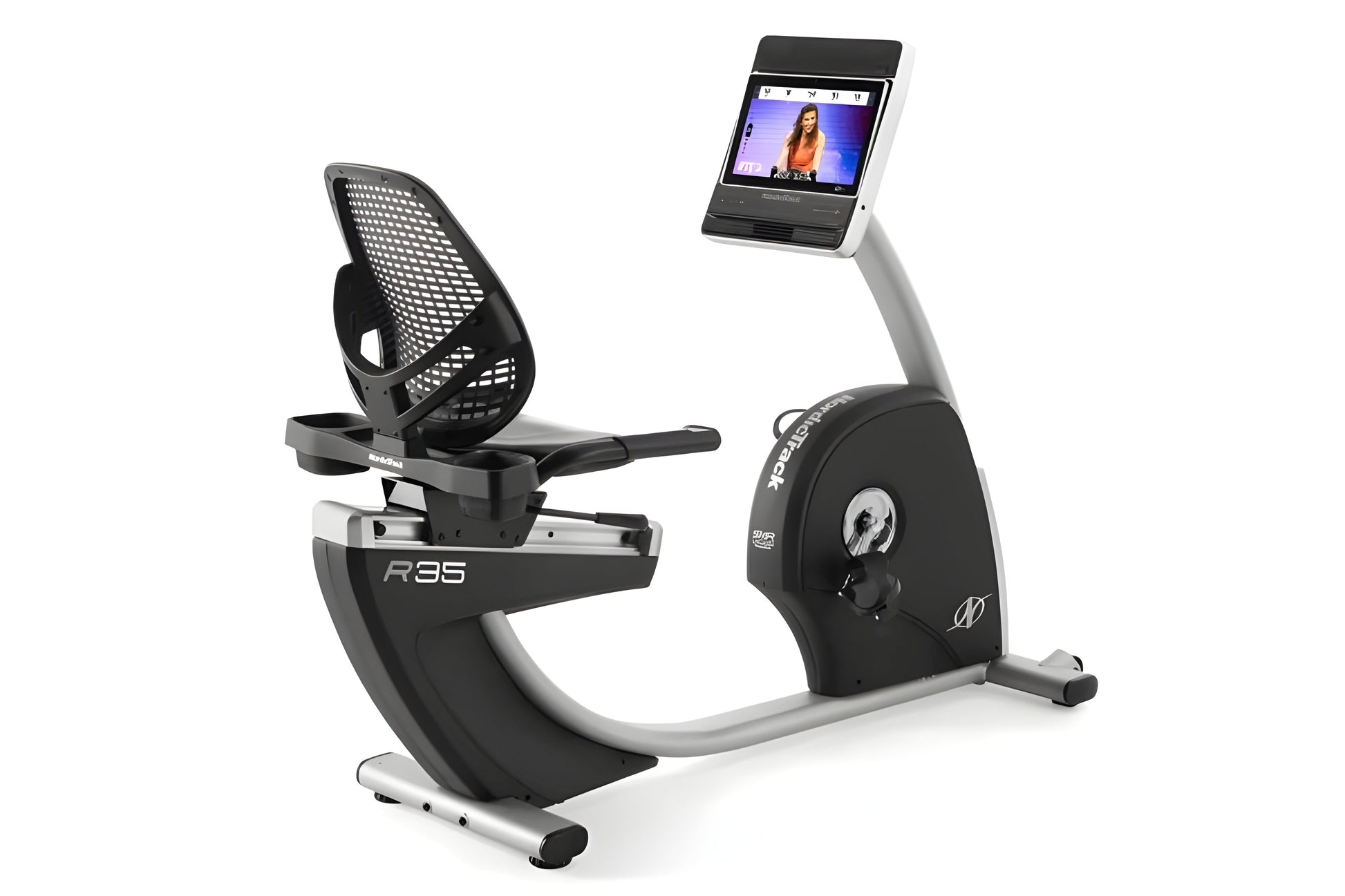 Build power and see results. From inspiring global bike workouts to motivating studio classes, NordicTrack bikes make fitness fun and effective. The NordicTrack Commercial R35 recumbent exercise bike offers comfort and stability due to the chair like design of a recumbent cycle. An innovative Step Thru design makes it easier to get on and off the recumbent bike. With comfort in mind, the R35 recumbent design features extra wide ergonomic pedals located directly in front of you.