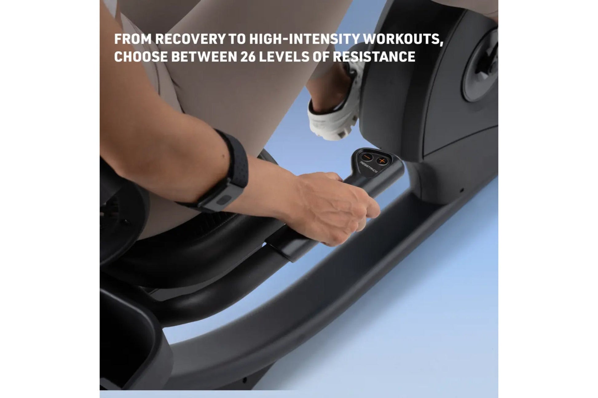 Sit back comfortably and push yourself through intense workouts or recovery rides. Paired with iFIT, you can follow trainers in workouts around the world. The NordicTrack NEW 10 Recumbent Exercise Bike is designed to make working out at home something you genuinely look forward to. With its vibrant 10” HD touchscreen, you can pick from an incredible range of workouts or lose yourself in stunning landscapes around the world as you pedal. It’s easy to find your perfect level with 26 smooth and quiet resistance settings. And with the latest iFIT 2.0 experience, everything’s faster and more personal—customized workouts, streaming options, and quick load times make each ride feel like it was made just for you.