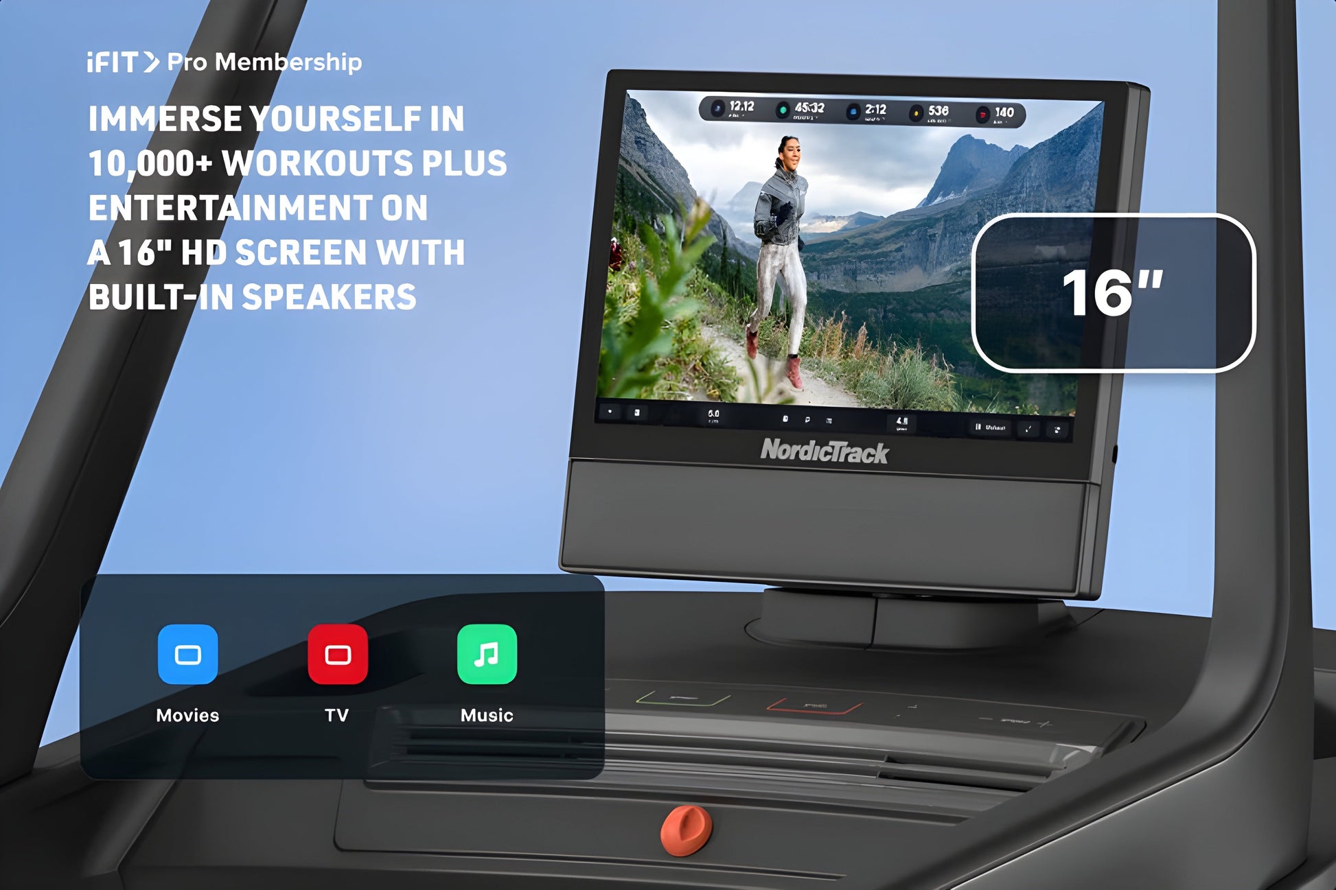 A: The X16 comes with a 16-inch interactive touchscreen, allowing you to stream live and on-demand iFit workouts, track your performance, and explore virtual running routes around the world.