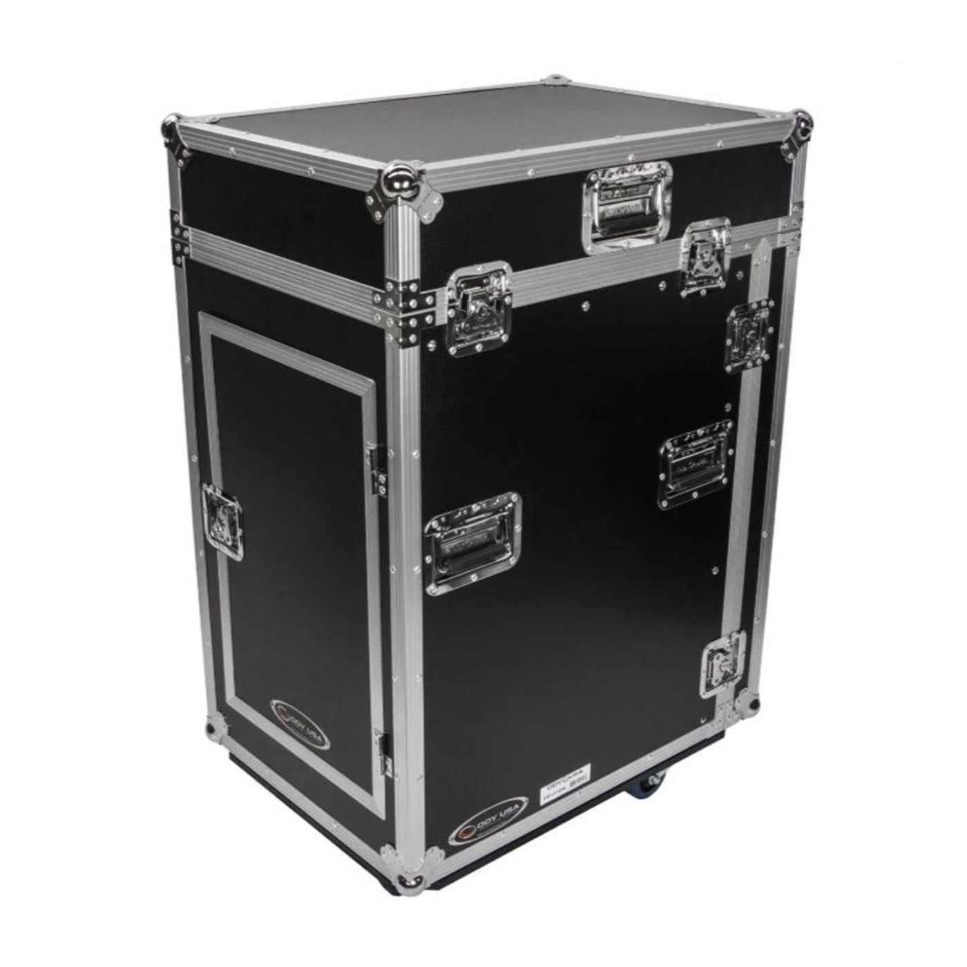 The Odyssey FZ1316W Pro Combo Rack is a great way to keep all your electrical DJ supplies organized in a working fashion. This combo racks will give you the best of both worlds giving you mount mixers and controllers on top for convenient access and all other essentials below (DJ equipment sold separately).The heavy-duty combo rack is constructed with a 3/8-inch ply construction wall that allows your equipment to travel safely and not get banged up when traveling. The top slanted rack has 13 spaces and the bottom verticle rack has 16 spaces which allow for a variety of equipment to be stored. This case is made with heavy-duty ball corners, recessed latches, and spring-loaded handles to ensure equipment travels safely.The interior depth is 3-inch at the front from top slant rail to bottom rail. Easily pack up your equipment and wheel your case to travel with ease knowing your equipment will arrive safely with the Odyssey FZ1316W Pro Combo Rack.