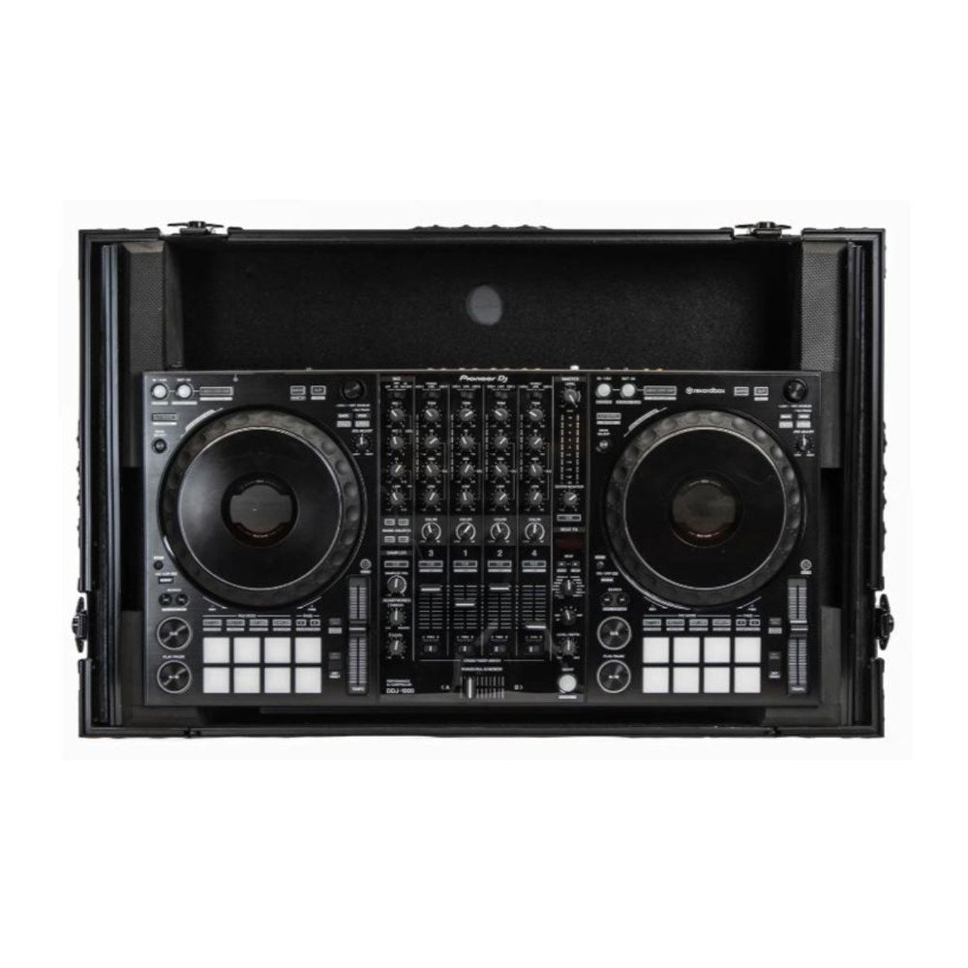 A: It fits Pioneer DJ controllers and other similar-sized equipment while providing space for a 1U rack-mounted unit like effects processors or power conditioners.