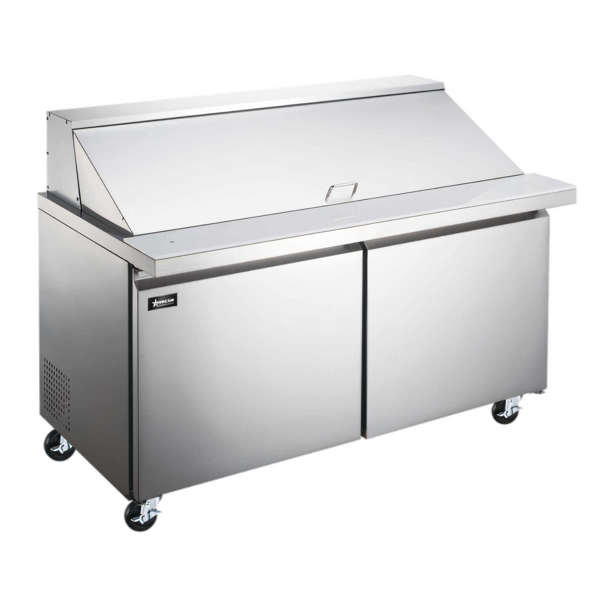 Commercial refrigerated prep table designed for efficiency in food preparation.