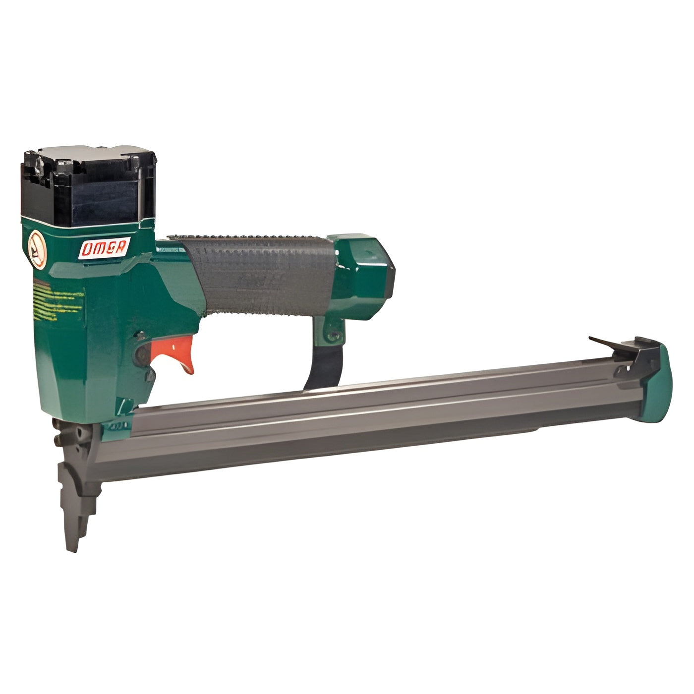 The Omer 18 Gauge Long Magazine Automatic Stapler - 90.28 CLV is a high-speed pneumatic stapler designed for industrial and professional applications. Compatible with Senco L Style 18-gauge staples, this stapler features a long magazine for extended use, reducing downtime for reloading. Its automatic firing capability ensures fast and consistent stapling, making it ideal for upholstery, furniture manufacturing, packaging, and other heavy-duty fastening tasks. The lightweight yet durable construction, combined with an ergonomic design, provides comfort and precision during prolonged use.