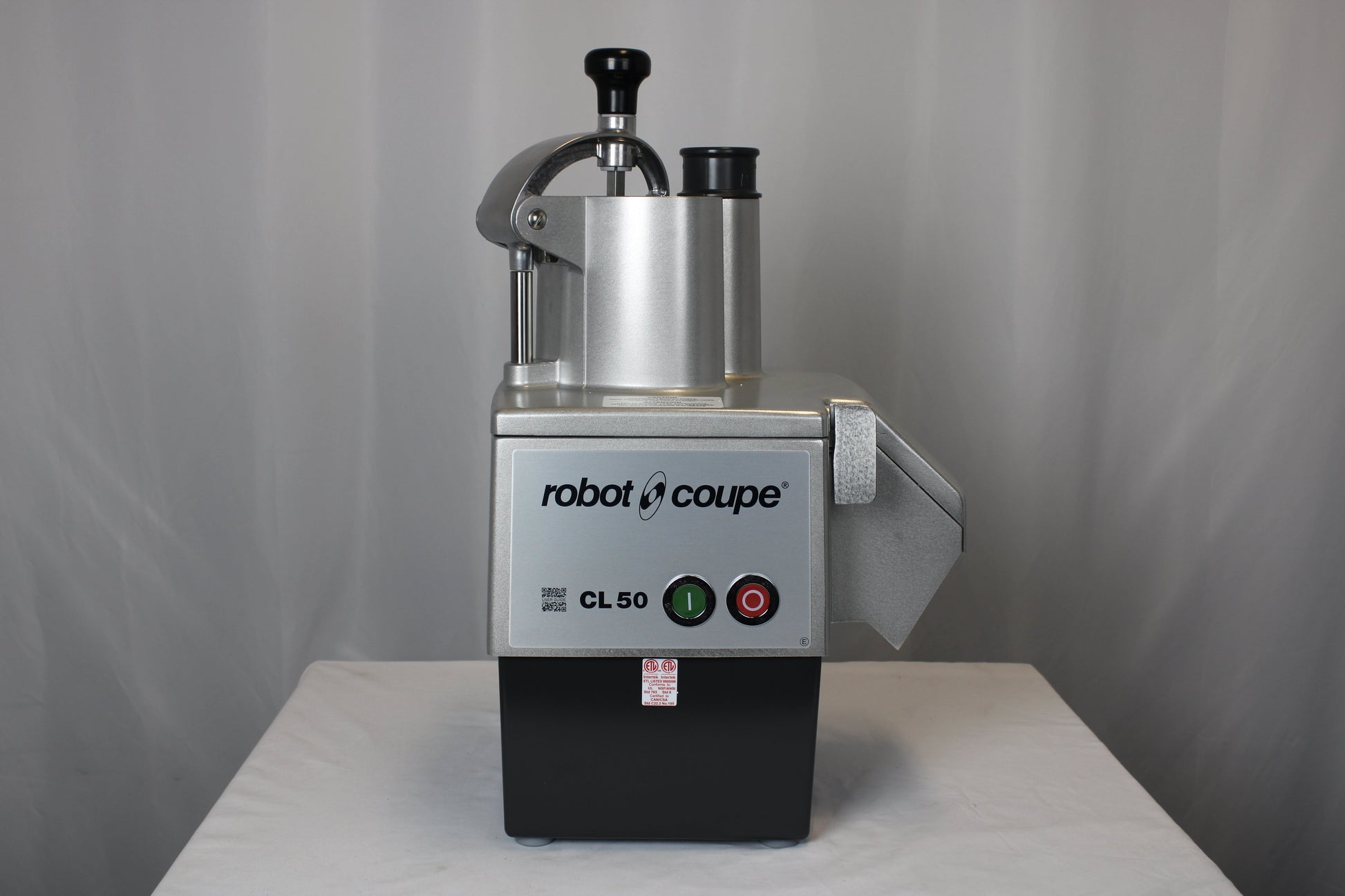 The Robot Coupe CL50E is a Vegetable Prep Food Processor. Prepare 1200 servings in 3 hours or less! Robot Coupe is the Inventor and World Leader in Food Processors! The vegetable prep attachment is designed for quality continuous feed for slicing, dicing, shredding, grating, french fry, and julienne. The unit accommodates 36 different processing discs and potato ricing attachment - Sold Separately. The standard model includes motor base unit with continuous food attachment, one 1/8" slicing disc, and one 1/8" medium grating disc. The new lid designed to ease the cleaning process. The larger hopper opening accommodates more product. Attachments are easily removed for maximum cleaning ability.Â