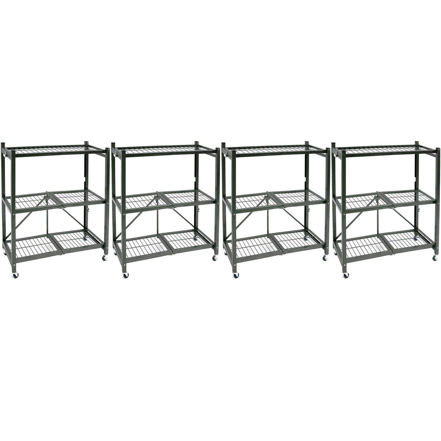 Origami R3 Foldable 3-Tiered Shelf Storage Rack & Wheels, Pewter (4 Pack) - 253008