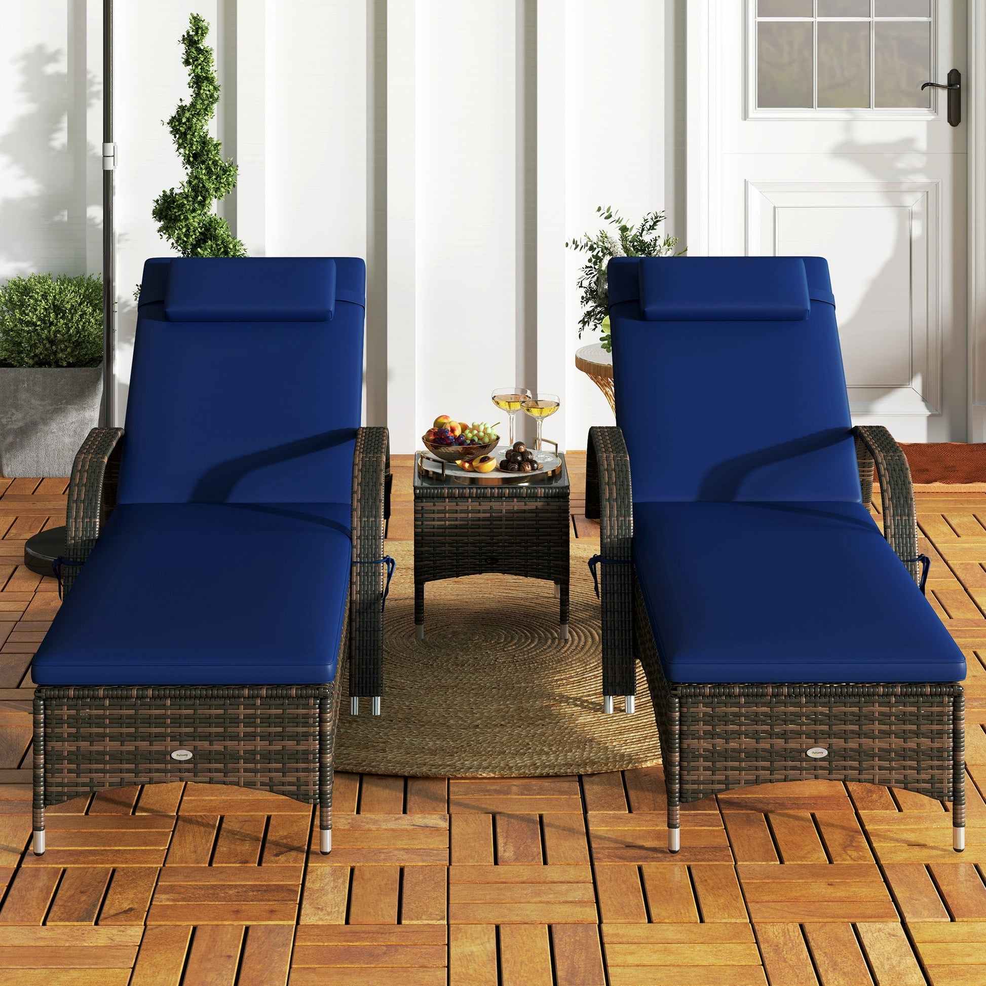 Durable Wicker Lounge Set: The Outsunny 3-Piece Chaise Lounge Set features all-weather PE wicker and a sturdy frame for lasting outdoor use.