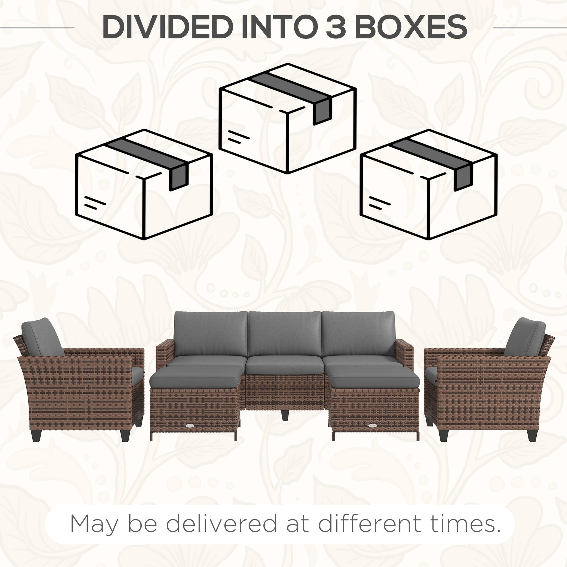Complete Outdoor Lounge Set: The Outsunny 5-Piece PE Rattan Patio Set includes a 3-seater sofa, two armchairs, and two ottomans, comfortably seating up to seven guests — perfect for family gatherings or entertaining outdoors.