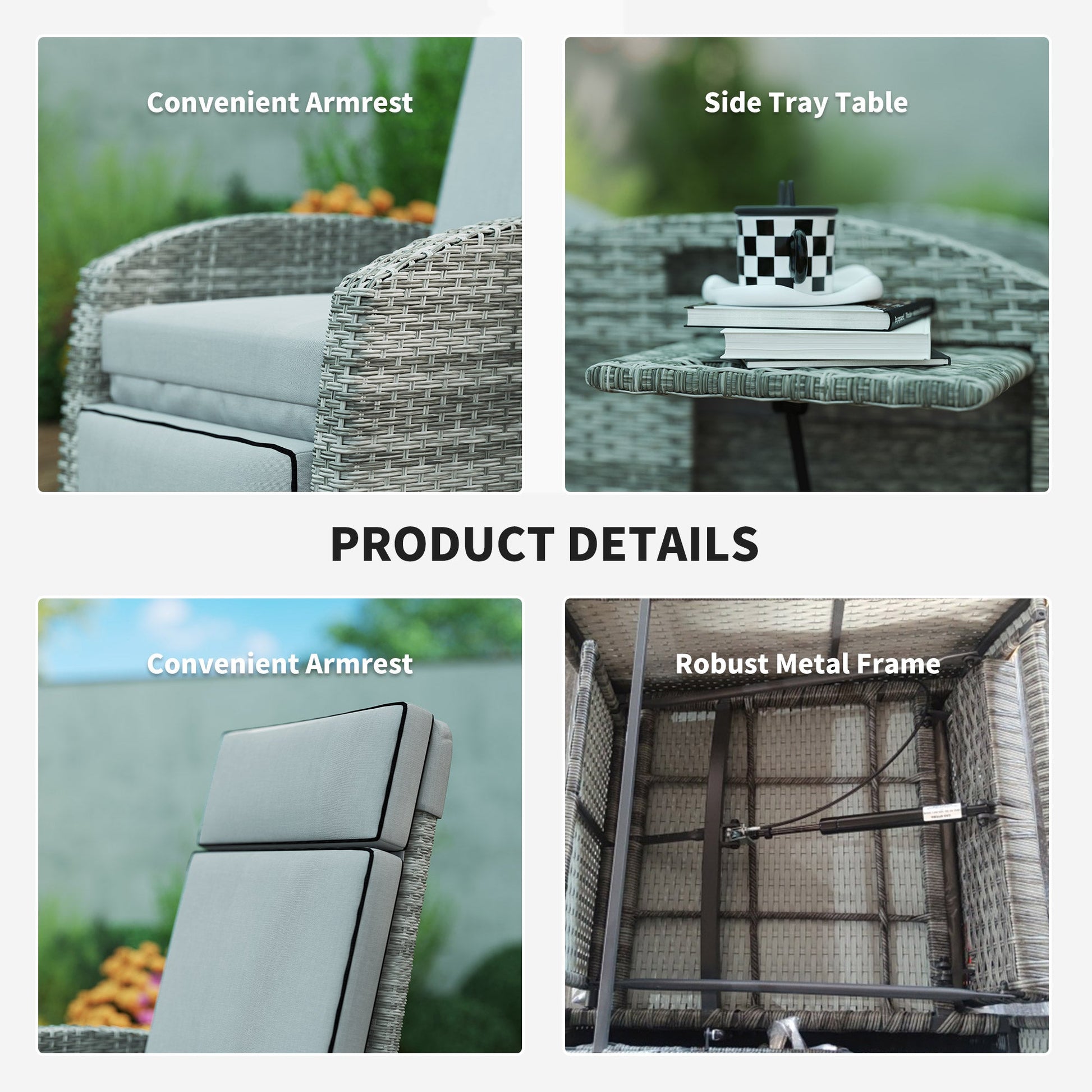- Build-in Side Tray: What's more comfortable than knowing everything is in its proper place? When you sit in our outdoor recliner, a convenient pop-out tray can provide room for a cup, book, or phone, eliminating the need for an extra table.