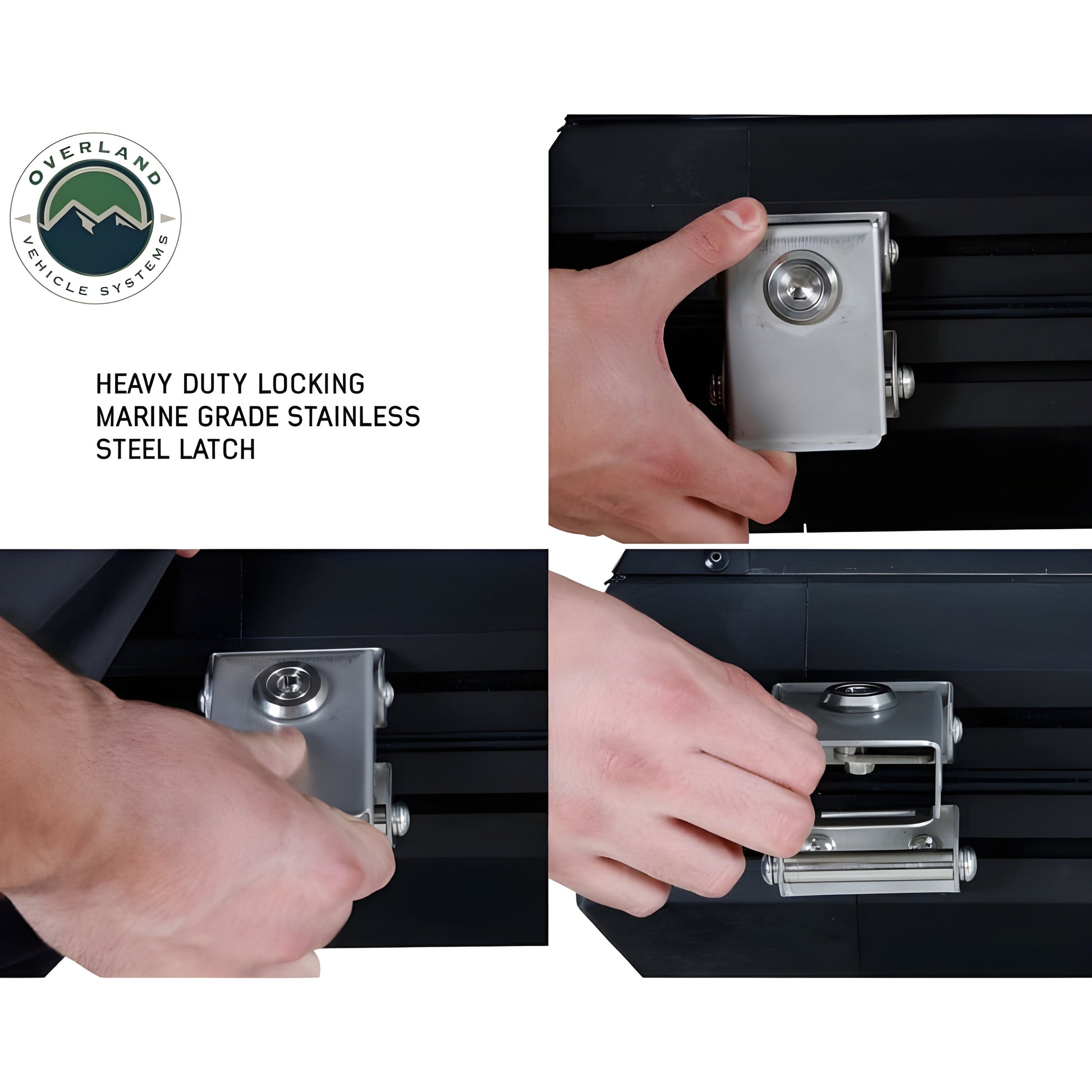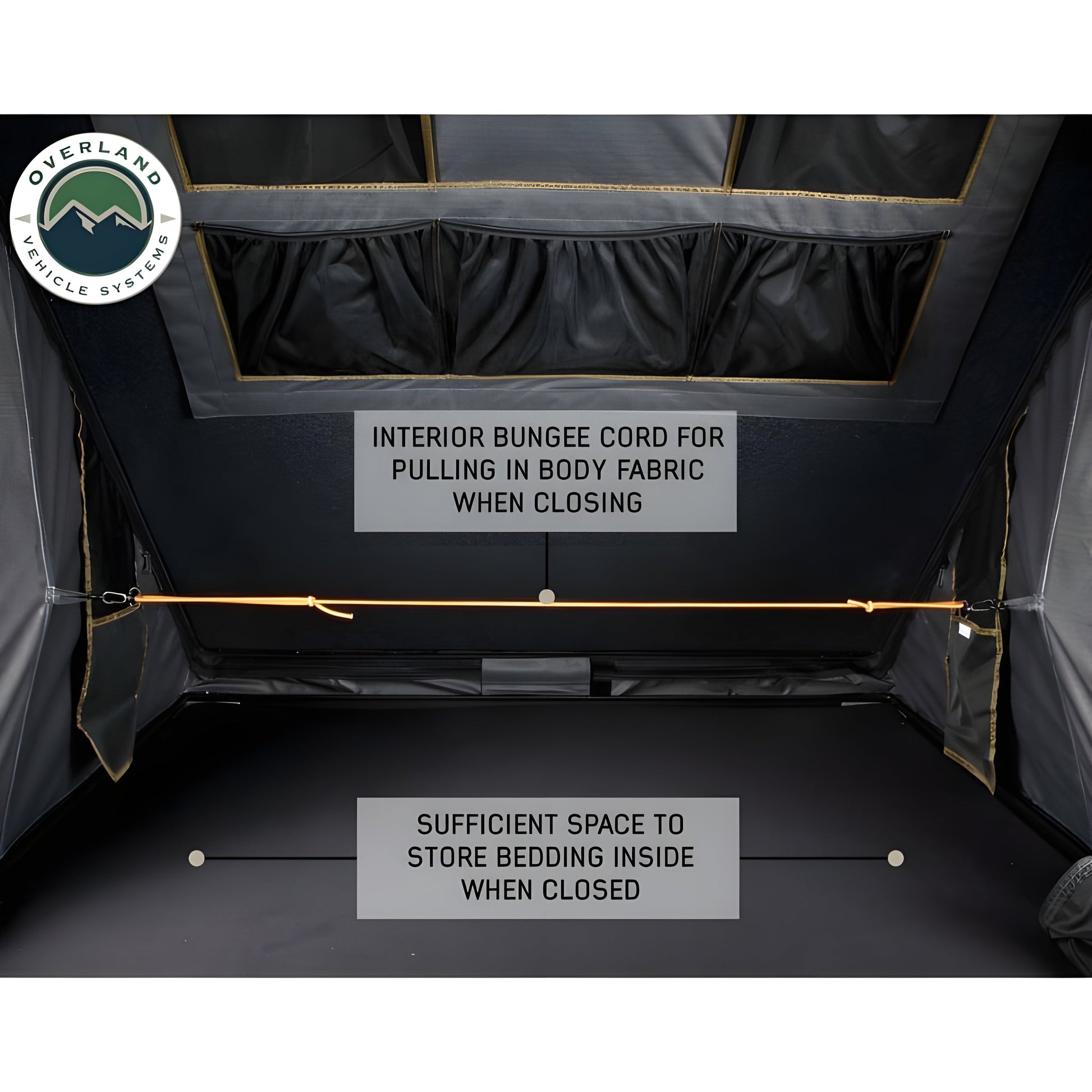 The Aluminum Body comes standard with T-slot accessory channels to help mount recovery gear and many other smaller lightweight accessories. Included are also two standard cross bars, which are fully compatible with Thule and Yakima accessories, to help carry extra gear for your adventure. The cross bars are not expandable, but they can be removed if need be. The included adjustable interior pop-up strut provides additional support for when weight has been added to the cross bars.