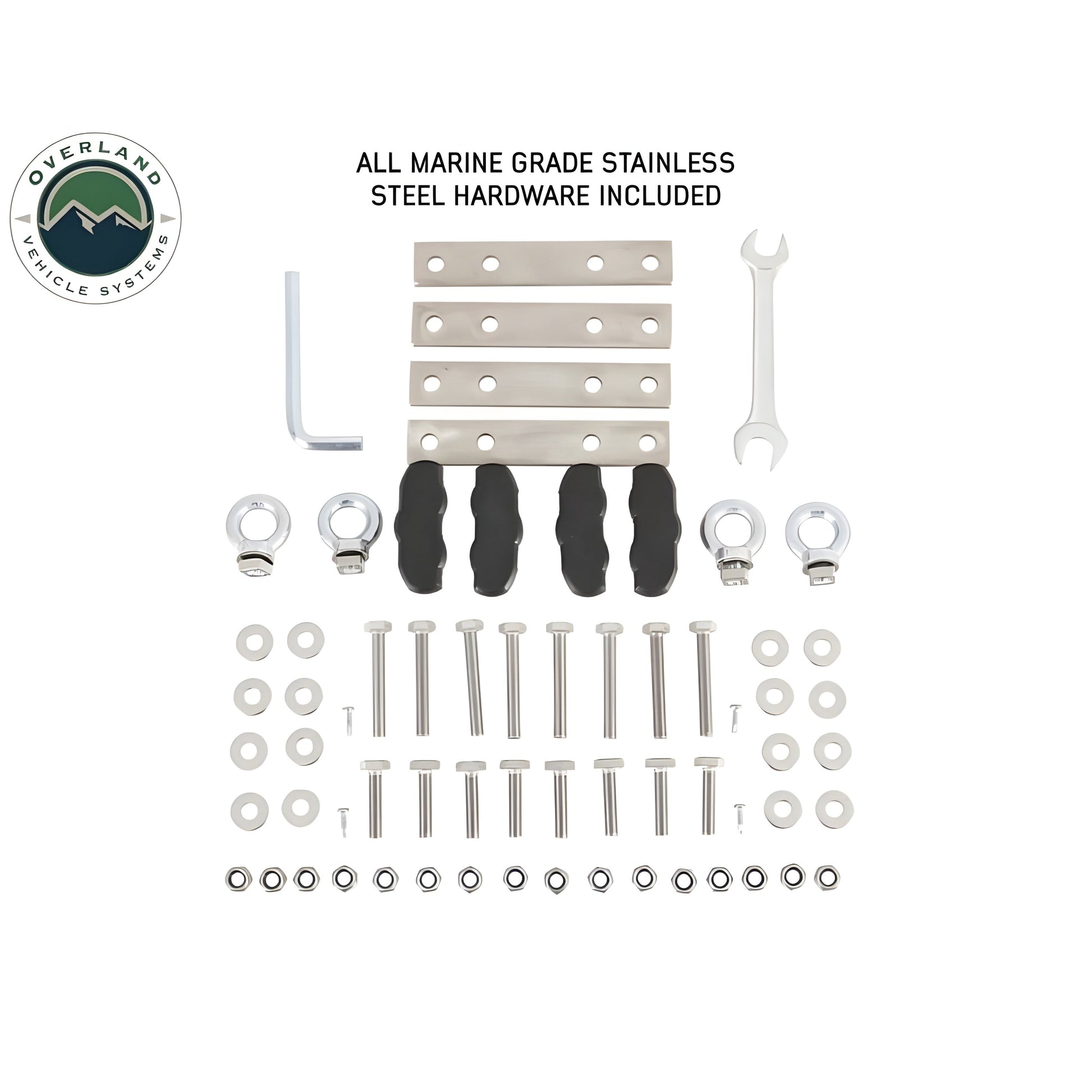 The Mamba Clamshell Roof Top Tent is a universal Item, which requires no drilling or modification to your vehicle if equipped with a factory or aftermarket roof rack or cross bars. With the help of a friend, lift it on your roof rack or cross bars and follow the detailed instructions provided using the stainless steel mounting hardware included. Please ALWAYS check roof rack compatibility before installing the tent as some racks are listed as "not compatible" with certain tent models.