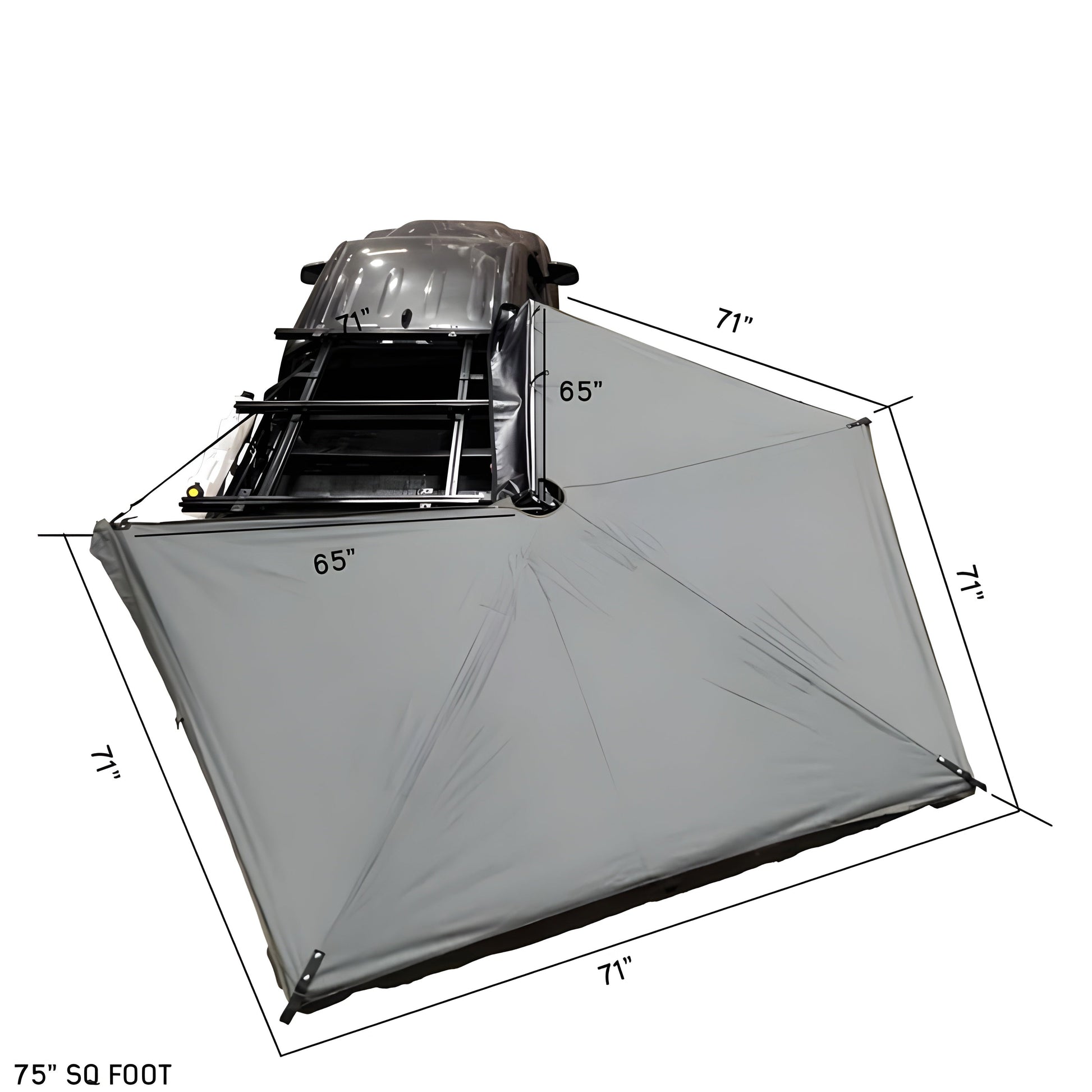 Let's get down to brass tacks. This awning isn't just about looking good (although it does that exceptionally well). It's about experience, adventure, and making every moment count. Offering 75 square feet of sheer coverage, it ensures you're always in the heart of the action, whether you're marveling at a meteor shower or simply soaking in a crimson sunset. And with its universal “L” mounting bracket, whether you're in a rugged jeep or a sleek SUV, this awning fits like a dream.