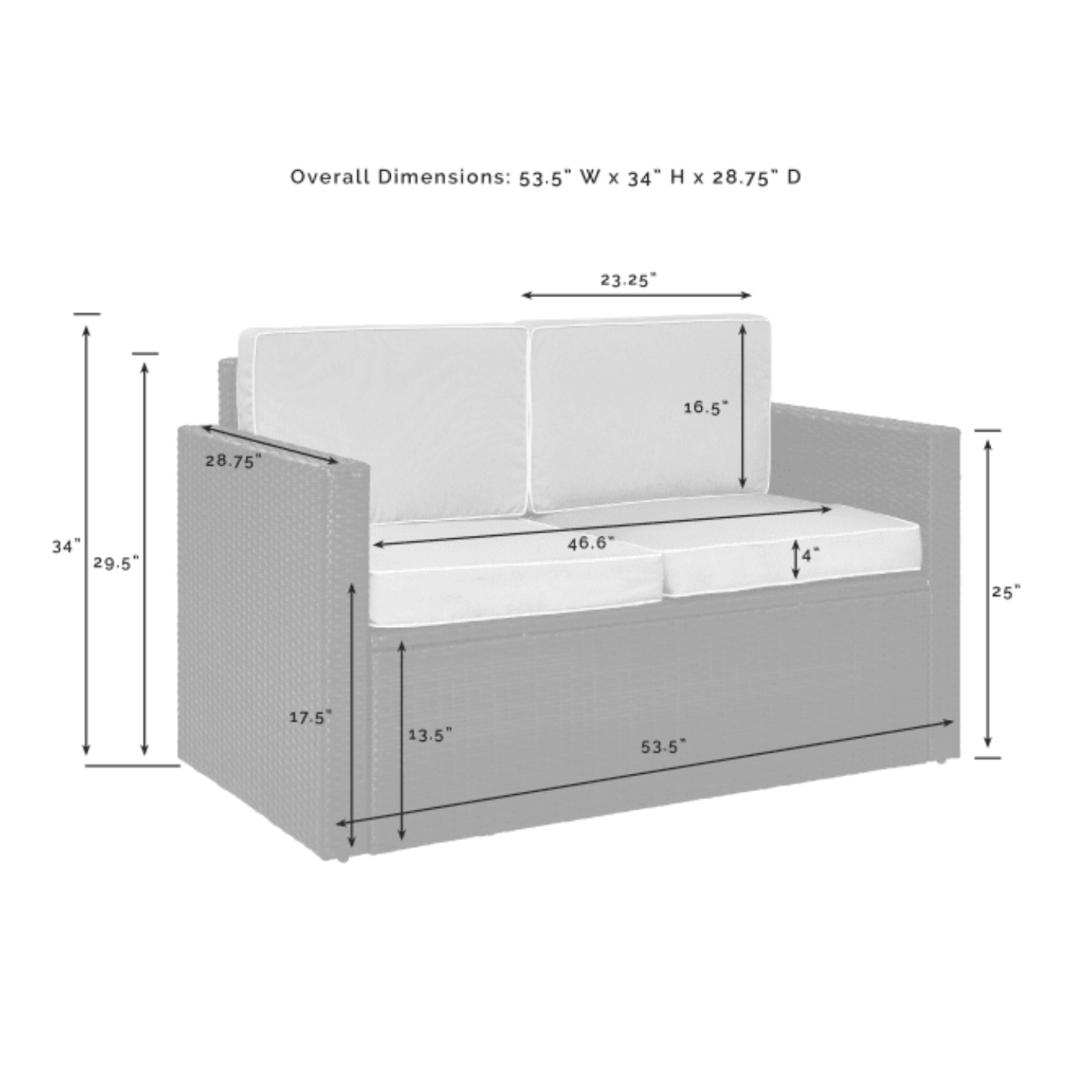 Lounge in comfort on the Palm Harbor Loveseat. Crafted with all-weather resin wicker woven over a durable steel frame, this loveseat has a lasting style. With comfortable moisture-resistant cushions and deep seating, the Palm Harbor loveseat is sure to be your favorite spot to unwind on a warm summer day.