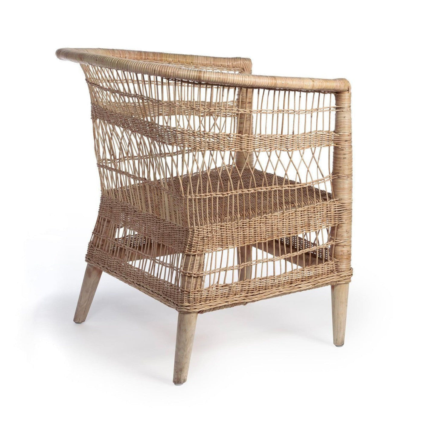 A: Featuring handwoven rattan with a soft, supportive seat, this chair offers a relaxed, boho-chic vibe while providing durable and comfortable seating.
