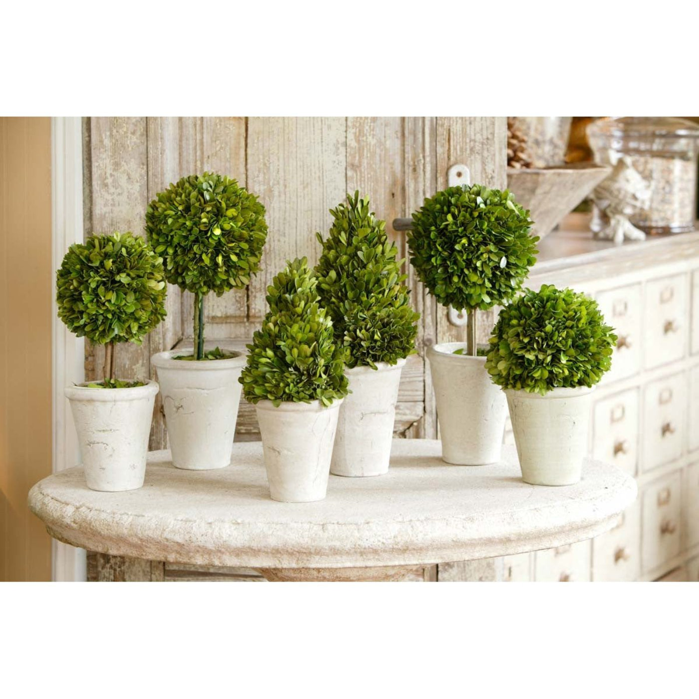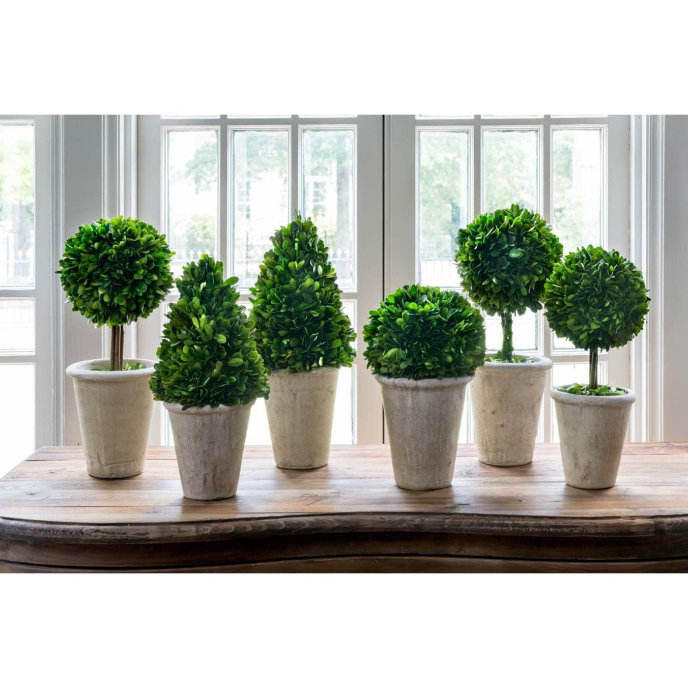 This collection of preserved boxwood topiaries, made from real boxwood leaves, can be used throughout the home, together to make a statement or separately, year-round.