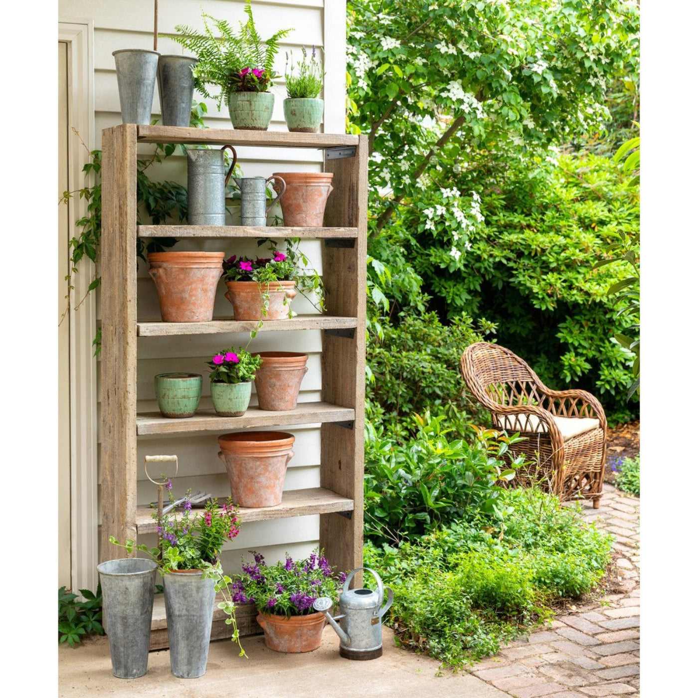 Rustic Charm: Crafted from reclaimed wood, this shelf features a rough-hewn finish that evokes the ambiance of a French country greenhouse.