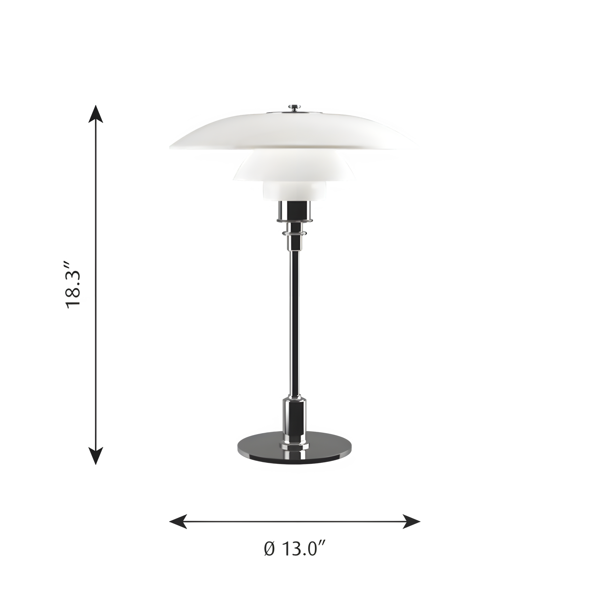 Designed by Poul Henningsen, featuring the famous 3-shade system for glare-free, balanced light.