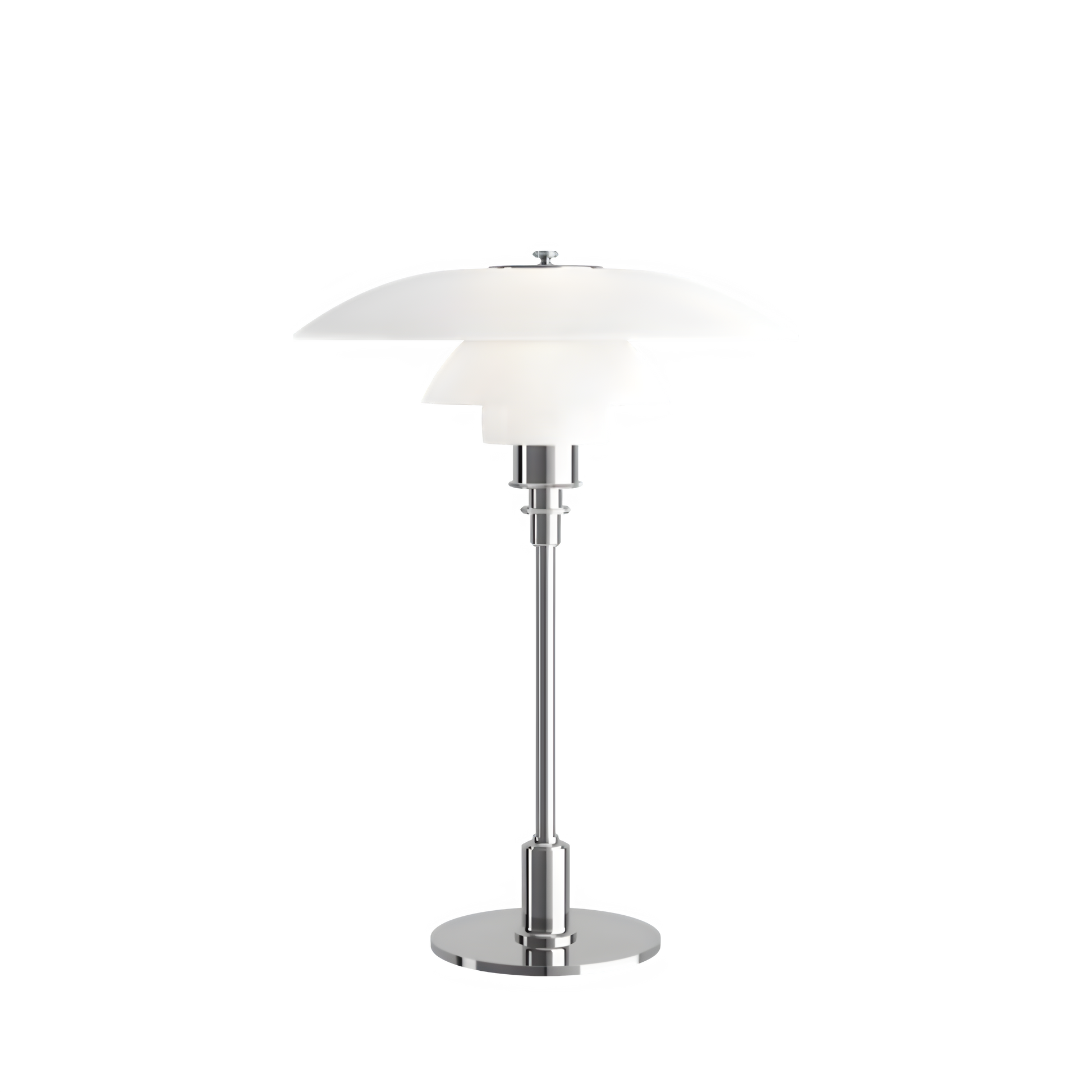 The Louis Poulsen PH 3.5-2.5 Glass Table Lamp offers a perfect blend of elegant design and functionality. Thanks to its reflective three-shade system, this lamp directs the light downward, providing a soft, even glow. Furthermore, the glossy top and sandblasted matte underside of the opal glass shades enhance the lamp's ability to diffuse light. As a result, the Louis Poulsen table lamp creates a warm, inviting atmosphere in any room.