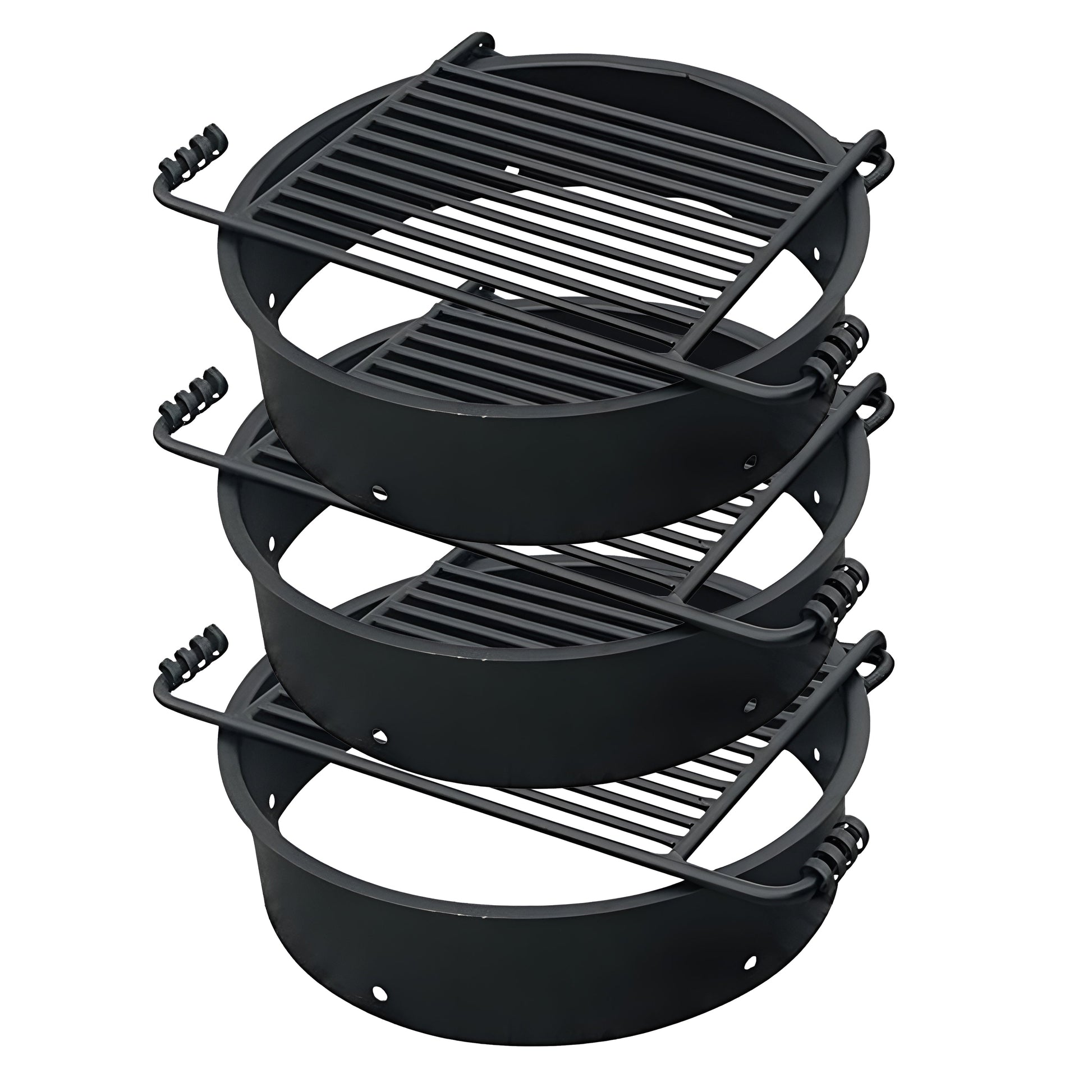 Pilot Rock 3 Pack 24” Steel Ground Fire Pit Rings & Metal Cooking Grates, Black - 415886