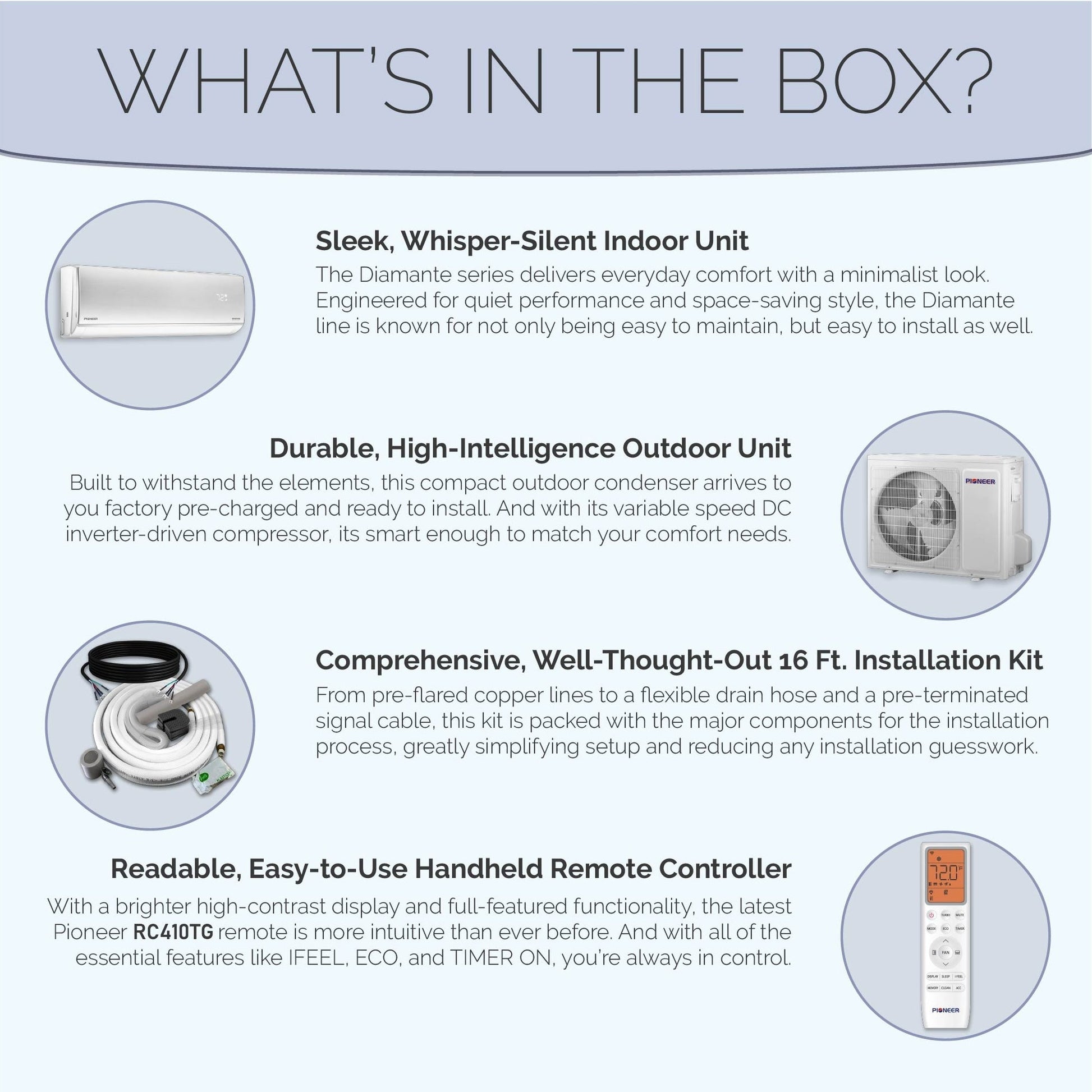 Pioneer Diamante Essenza 11,500 BTU 17 SEER2 230V High-Wall Ductless Mini-Split Air Conditioner Inverter Heat Pump with 16 Ft. Kit - WYT012GLUI17RL