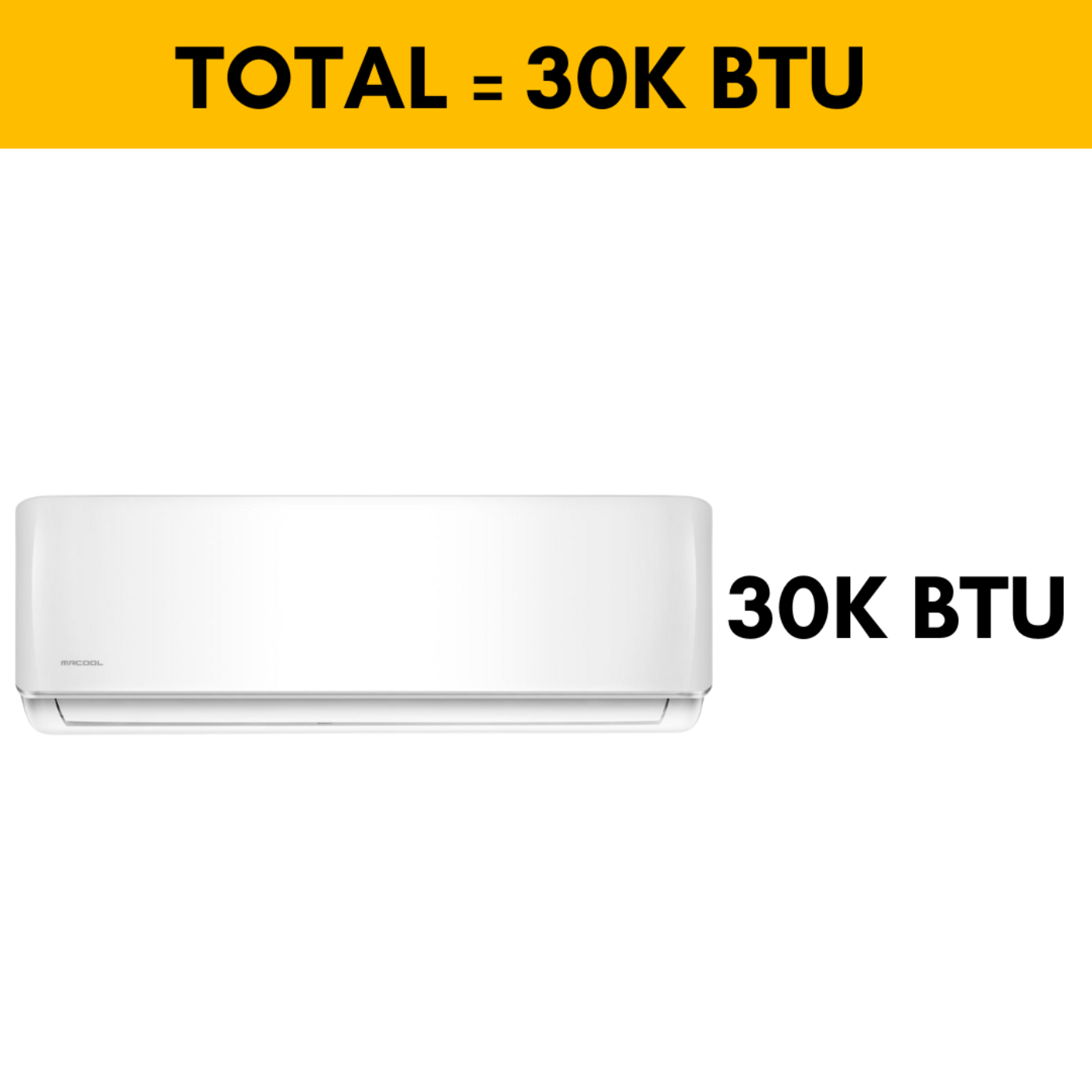 - Heating capacity: 30,000 BTU/H with 9.5 HSPF efficiency