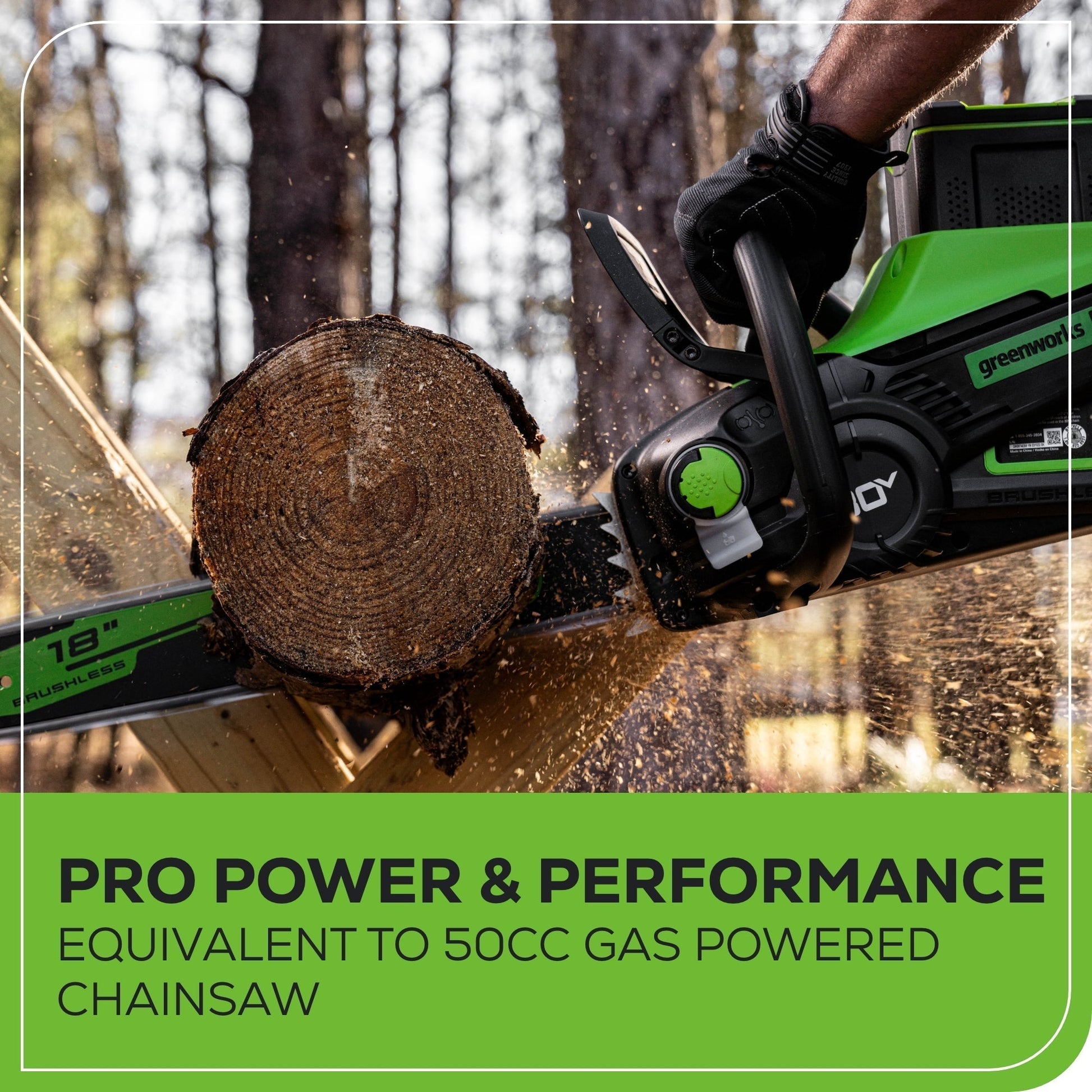 Powerful Cutting Performance: The Greenworks 80V 18" Chainsaw delivers 2.5kW of power, providing smooth, efficient cuts through thick logs and branches with ease, ideal for demanding tasks.