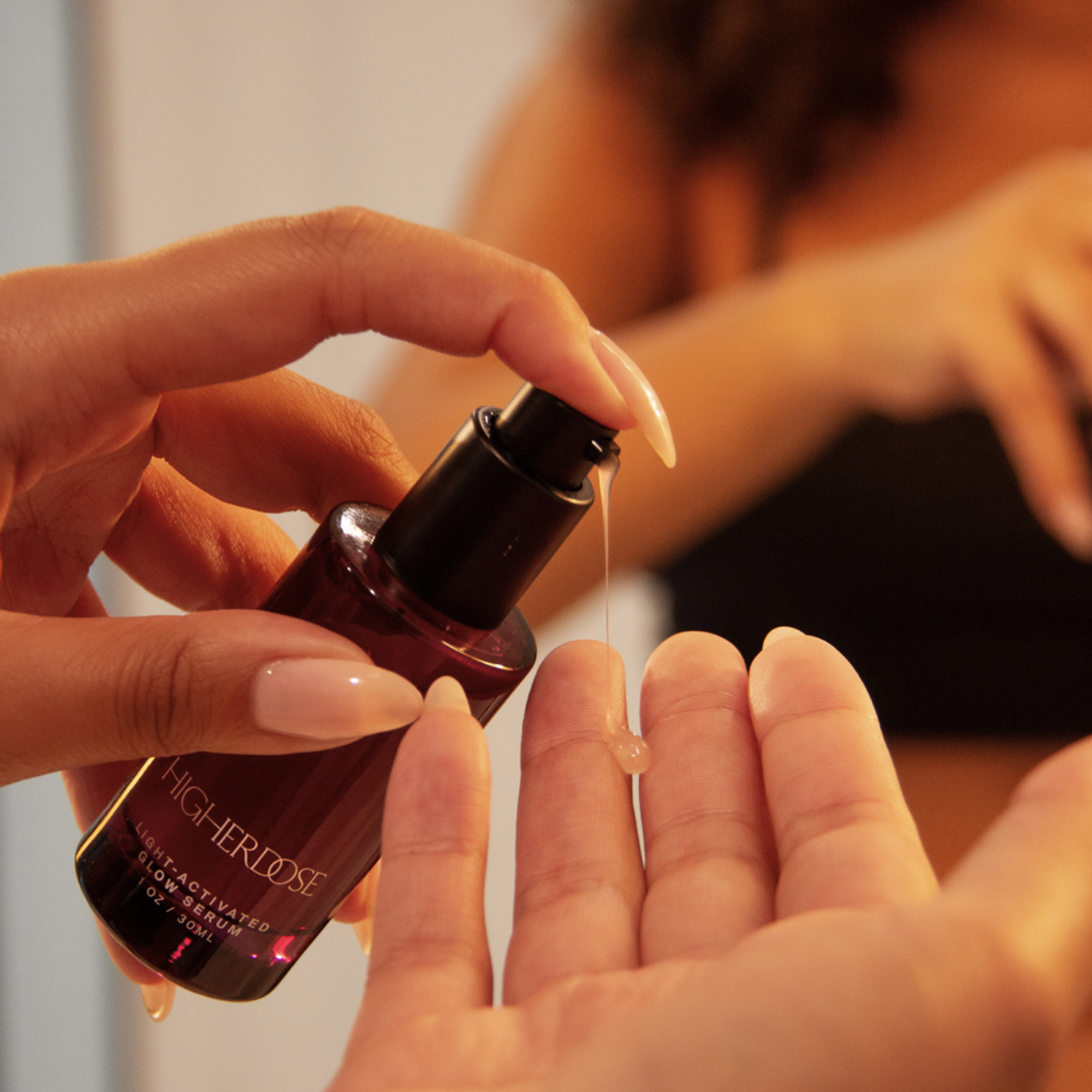Glow from the inside out with our Red Light Skin Starter Set—the ultimate fusion of cutting-edge red light tech and a skin-transforming serum for an addictive radiance. FDA-cleared for real results, the Red Light Face Mask and Neck Enhancer utilize proven red light technology to smooth fine lines, supercharge collagen, and deliver a serious glow boost. Amp it up with our Light-Activated Glow Serum, specially designed to soak up the benefits of red light, leaving your skin visibly firm, even-toned, and lit from within.