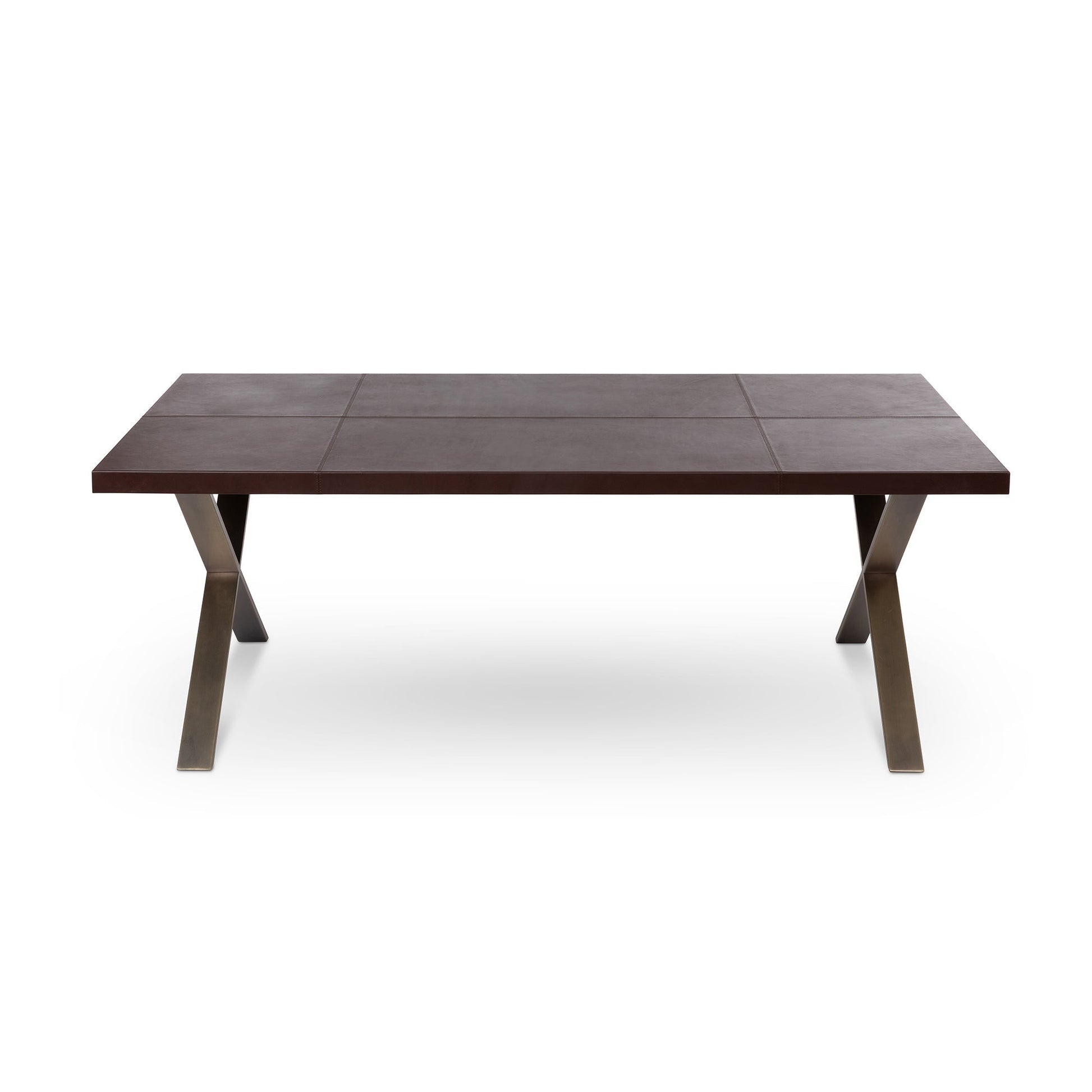Park Hill Collection Rhodes Handcrafted Leather & Brass Dining Table – Artisan Iron Design, Rustic Elegance for Your Home
