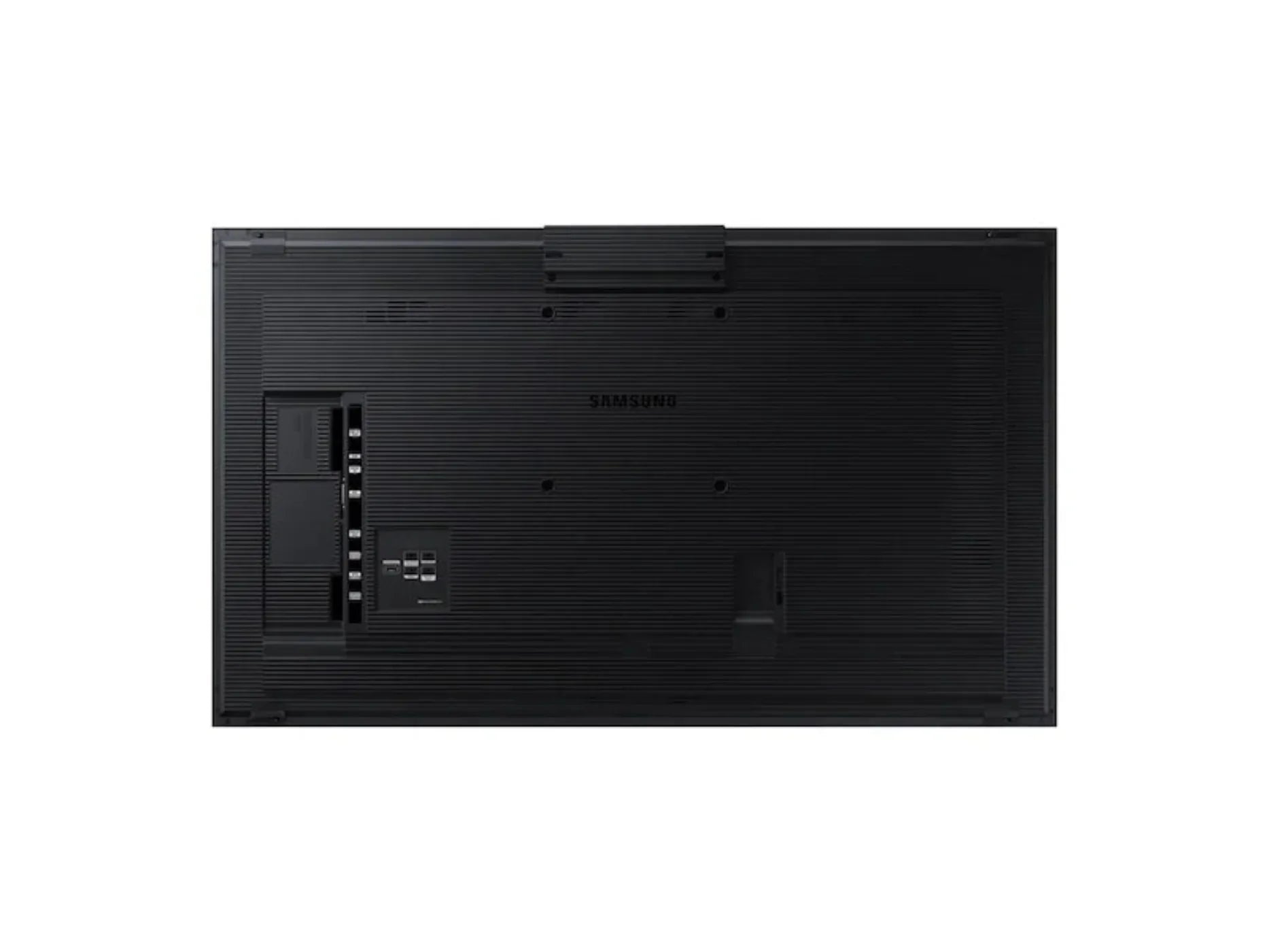 A: It features 1920x1080 Full HD resolution, a slim bezel design, anti-glare technology, 24/7 operation, and Samsung’s Tizen-powered smart signage platform for seamless content management.