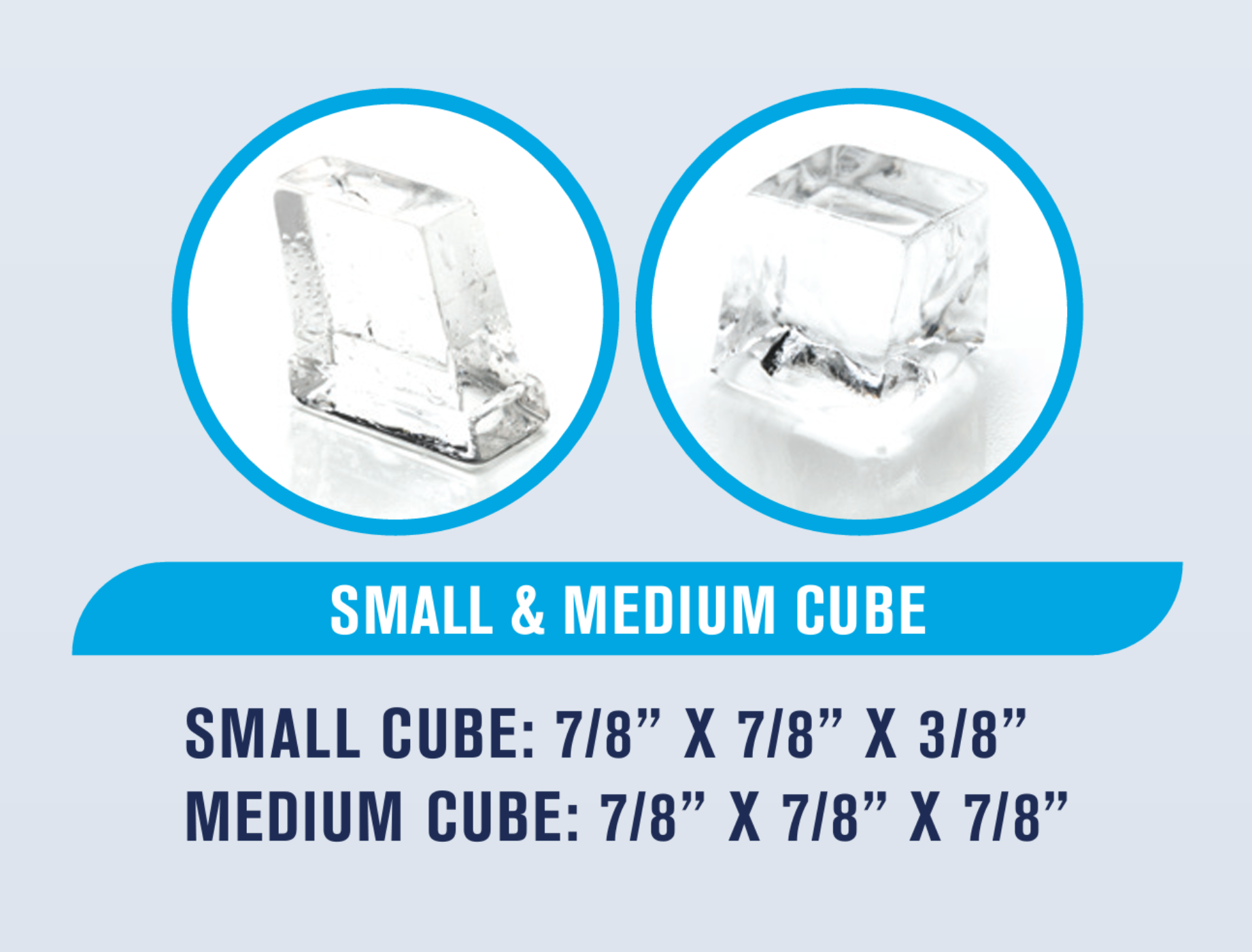 Ice Cube Size: Produces medium-sized cubes measuring 7/8" x 7/8" x 7/8", suitable for a variety of beverage applications.