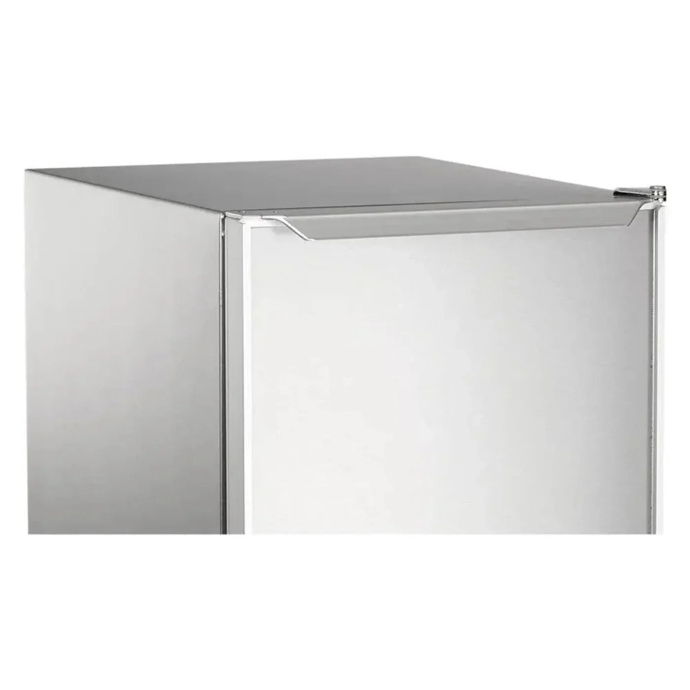 The unit's aluminum door with a brushed stainless steel finish and matching exposed door frame adds a touch of elegance to any space. Additionally, the door is reversible out of the box, offering flexibility in installation. It also comes equipped to accept a 1/4" or thinner door panel to match existing decor, with instructions provided in the user manual for easy customization.