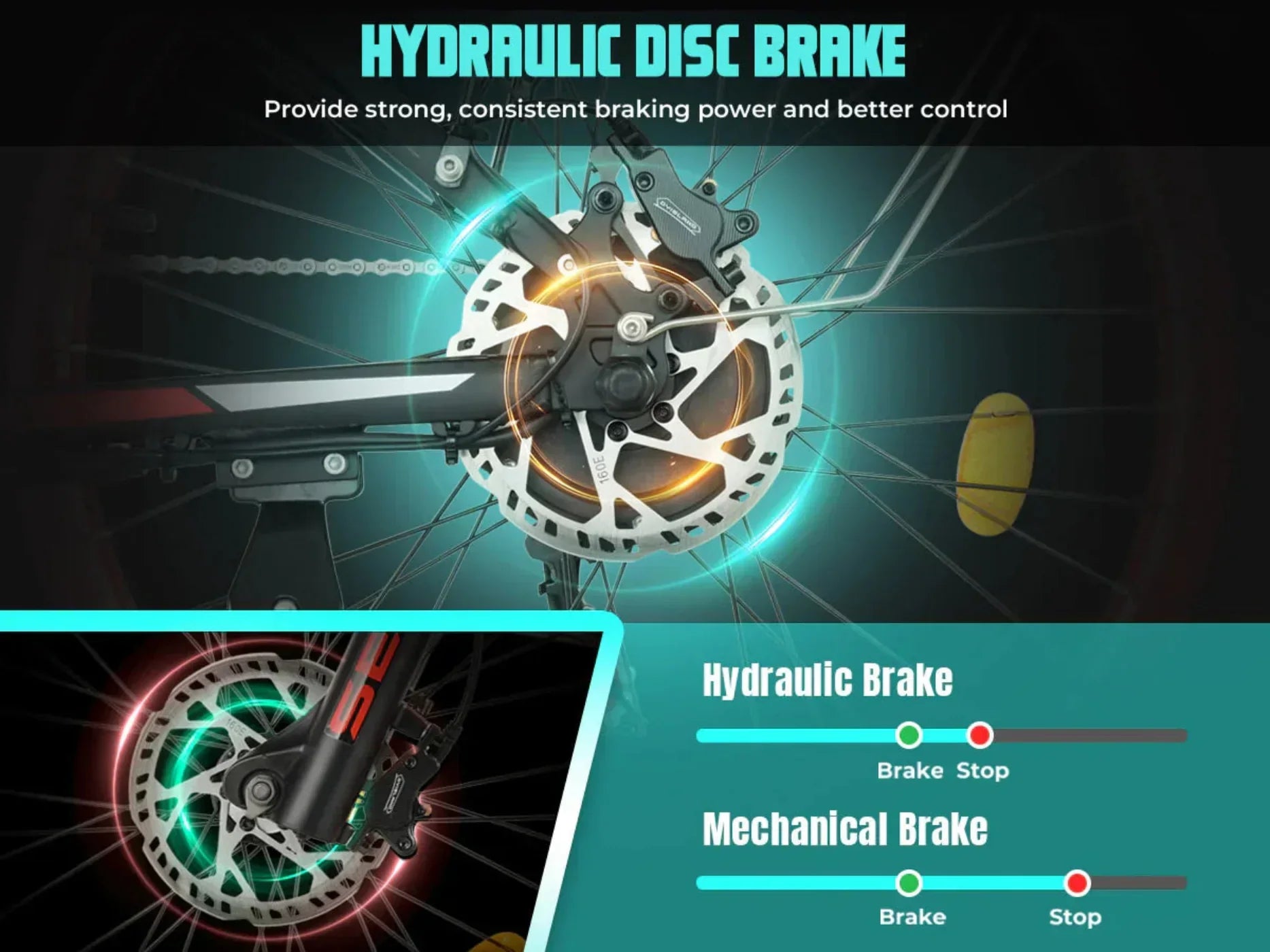 Additionally, hydraulic brakes require less maintenance and provide consistent performance across various weather and terrain conditions, thereby improving the overall riding experience.