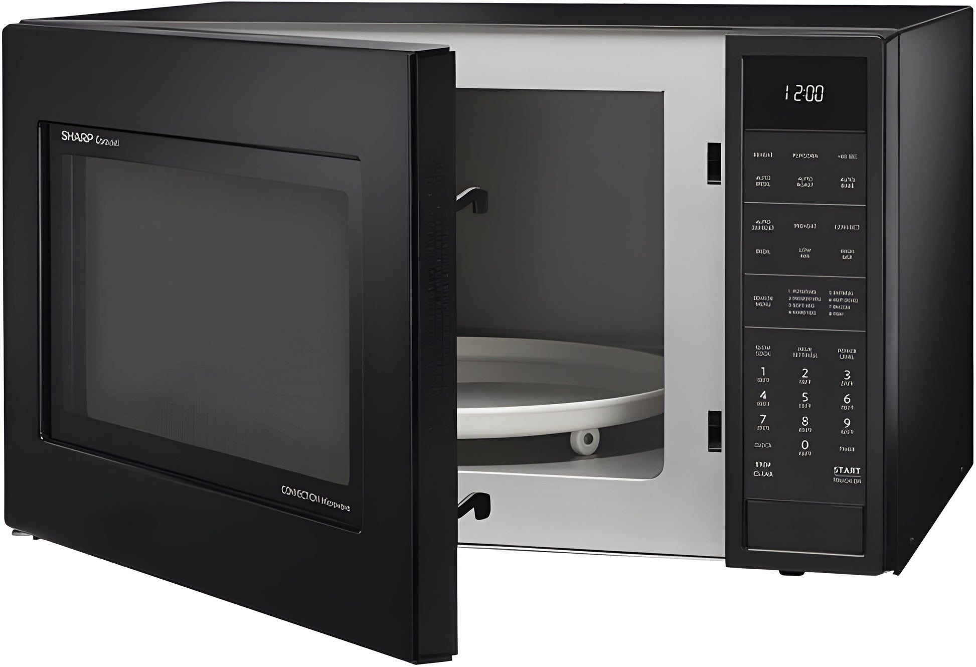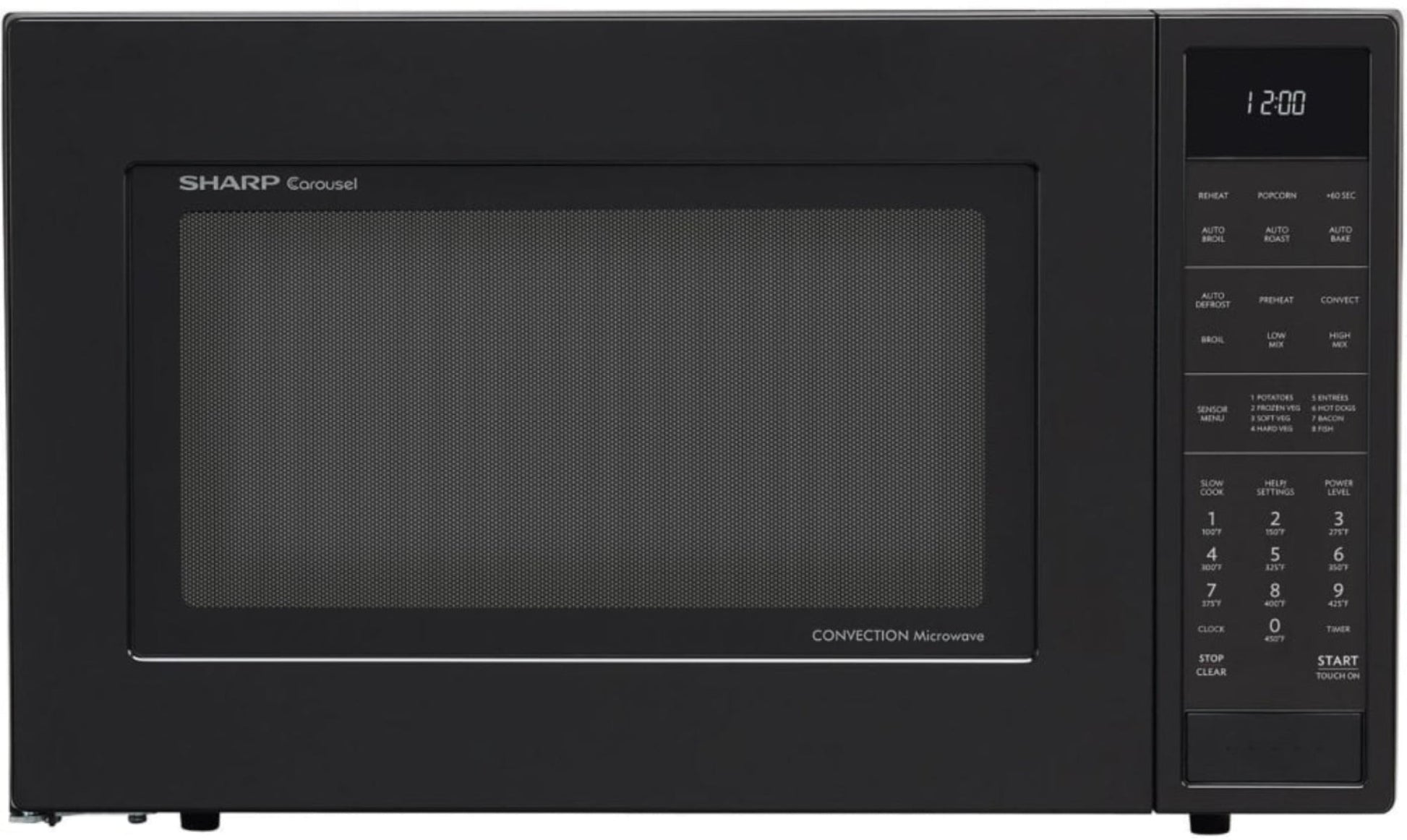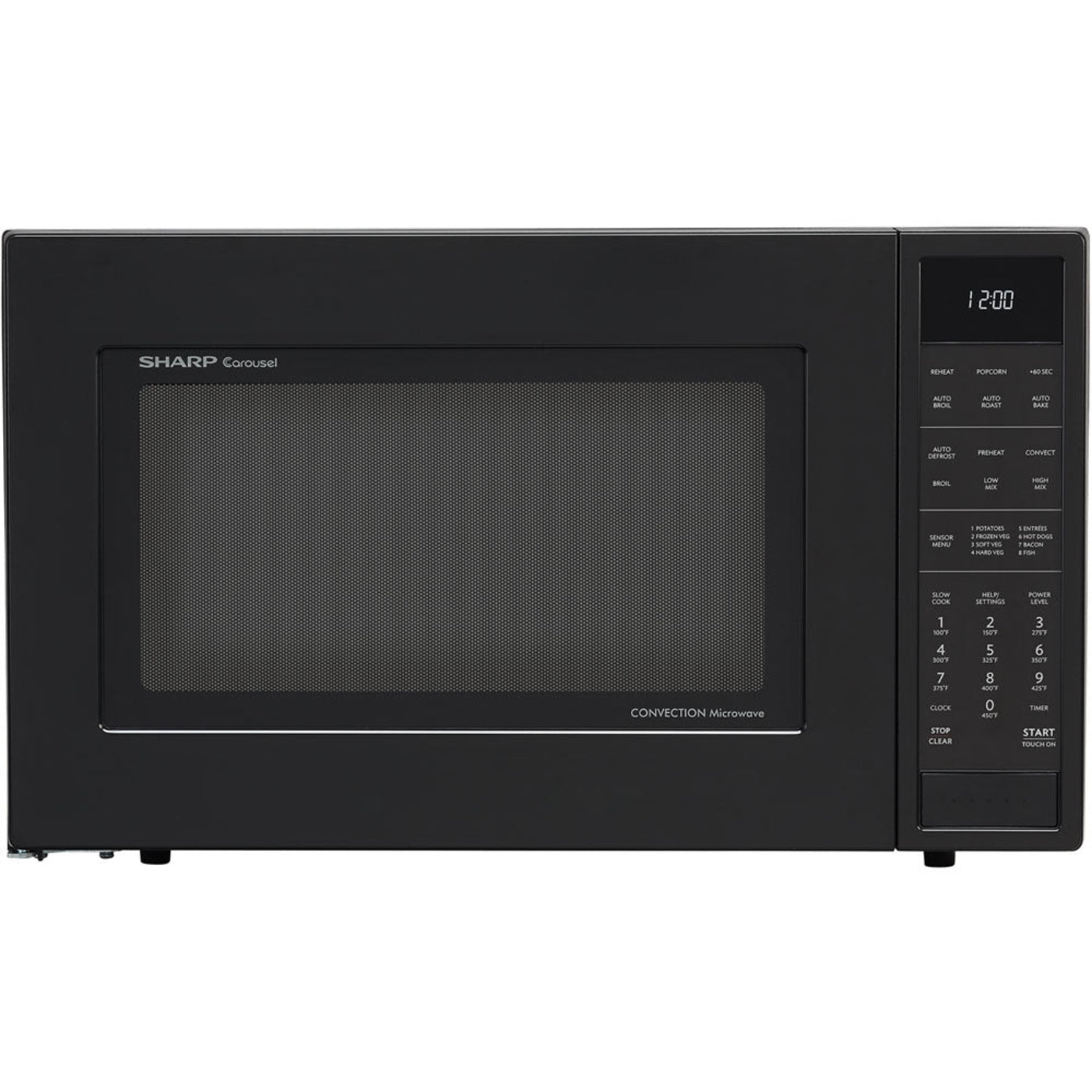 This Sharp carousel convection microwave is full of innovative features to bring true flexibility to your kitchen. It has 1.5 sq. ft. capacity and an extra-powerful 1,450 watts of cooking power. And this smooth black convection microwave has much more to offer. You really do get the best of both worlds with this Sharp countertop convection microwave, combining the power of both microwave and convection ovens for both speedy and thorough cooking. The ceramic turntable for this sharp micro convection oven is an elegant, glossy white, oven-safe ceramic platter, which is easy to clean and dishwasher safe. Like all Sharp convection microwaves ovens, this item has a lineup of features that will enable you to cook for specific foods just how you like. It has one-touch buttons for such common cooking modes as reheating, popcorn, broiling, roasting, and baking, along with ten cooking power levels. The interior is smooth and completely sealed for easy cleaning. Precise Cook Sensor Technology monitors cooking times automatically, making cooking fast, easy and worry-free. The bright and easy-to-read LCD display keeps controls at your fingertips. You can also program the unit to turn on or off at any time. It's also UL certified and ADA compliant, so you can be confident of the microwave's dependability and safety.
