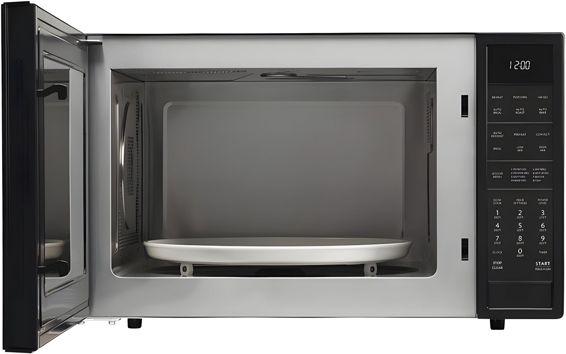 A: This microwave has a 1.5 cu. ft. capacity, offering ample space for large dishes and cookware.
